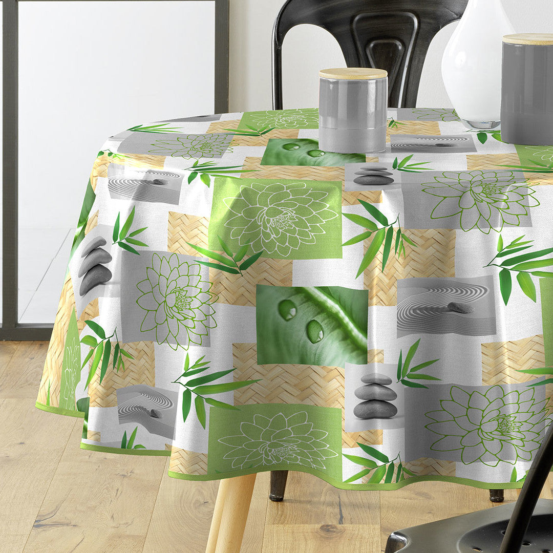 Almeria – Rund voksduk med grønne zen-motiver Ø 155 cm