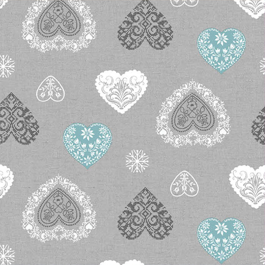 Amancy juleduk grå blå gletscher, akrylduk med flekkavvisende behandling, 155 cm bred