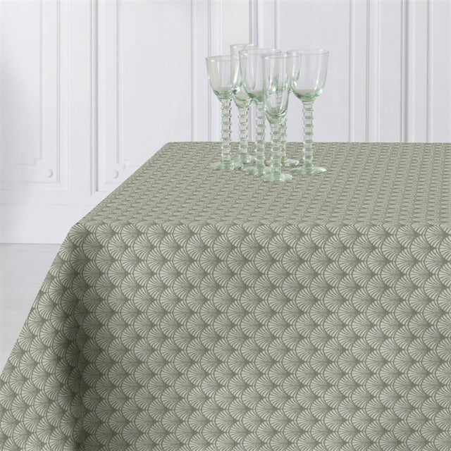 Amigoni Støvete Grønn - Jacquardvevd akrylduk med diskret viftemønster