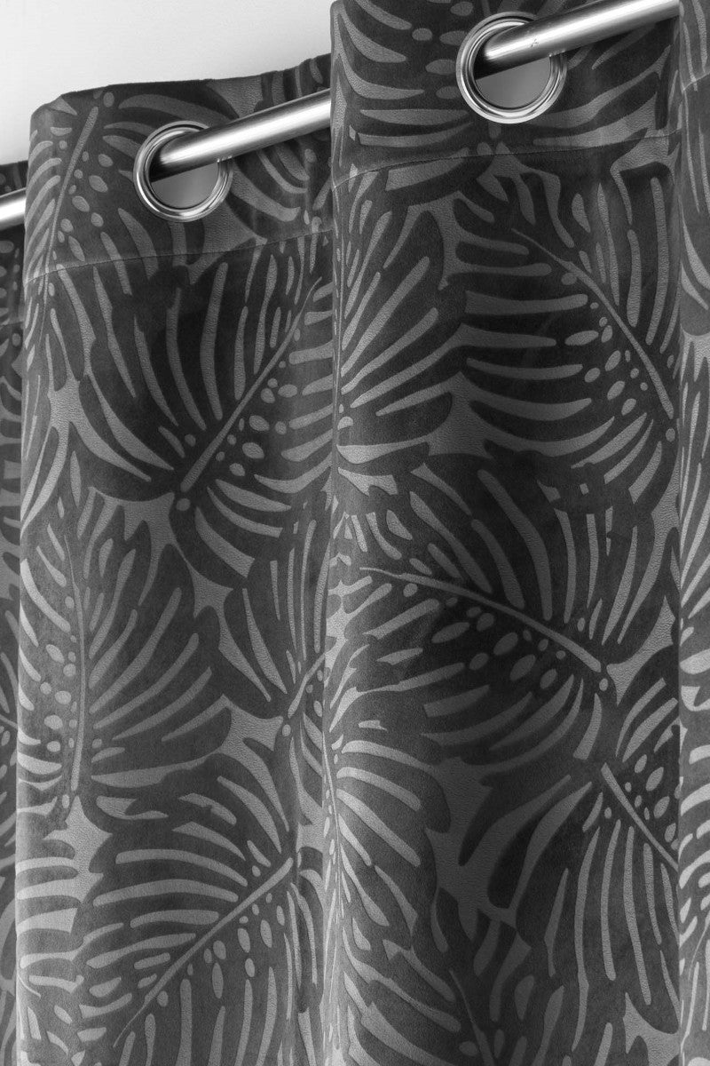 Analia Antrasitt er et stilfullt mørkleggingsgardin med et elegant preget velurmønster, inspirert av naturens myke linjer. Den dype antrasittgrå fargen kombinert med en diskret glans gir gardinet et luksuriøst og rolig uttrykk som passer perfekt både i moderne og klassiske rom.
