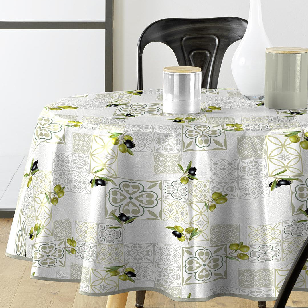 Andalousie - Rund voksduk med oliven, Ø 155 cm