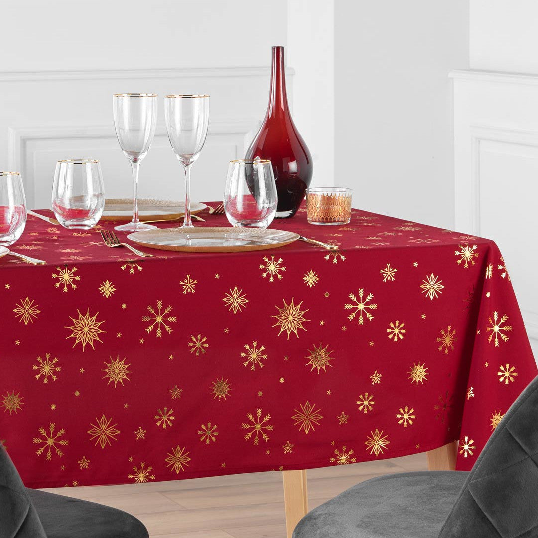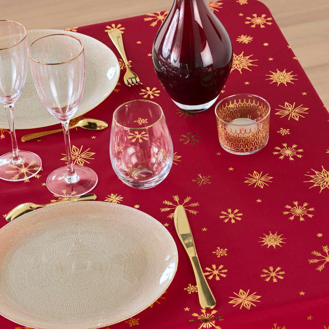 Astrelia Rød/Gull - juleduk med gyldne stjerner 140 x 240 cm