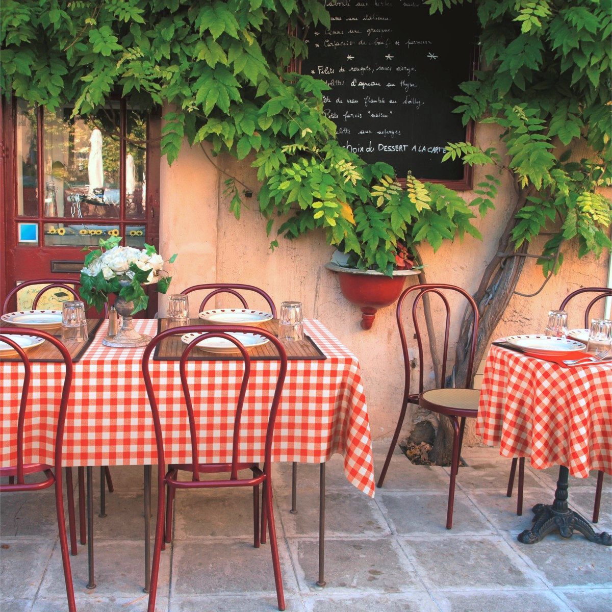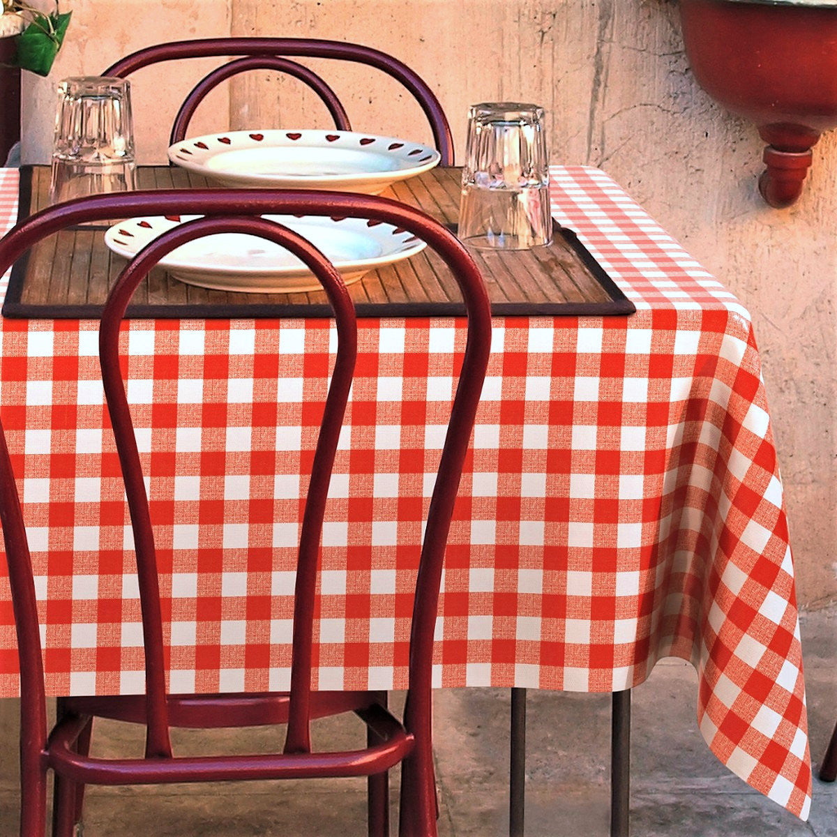Avanti rød-hvit rutet voksduk – LFGB, voksduk godkjent for kontakt med matvarer