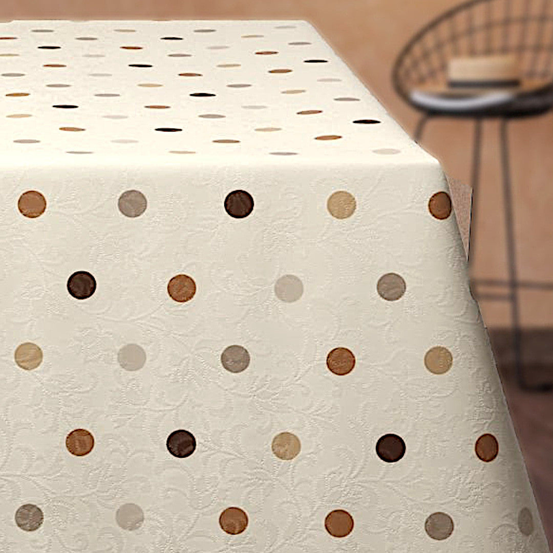 Barok Råhvit – Voksduk med prikker i varme bruntoner