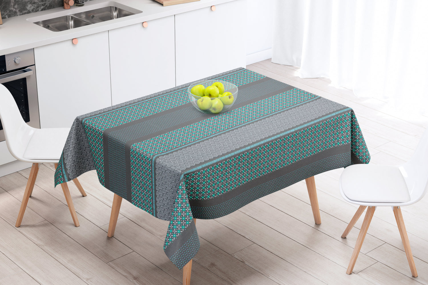 Duken er vevd i bomull og belagt med akryl, noe som gjør den enkel å holde ren uten behov for vaskemaskin.