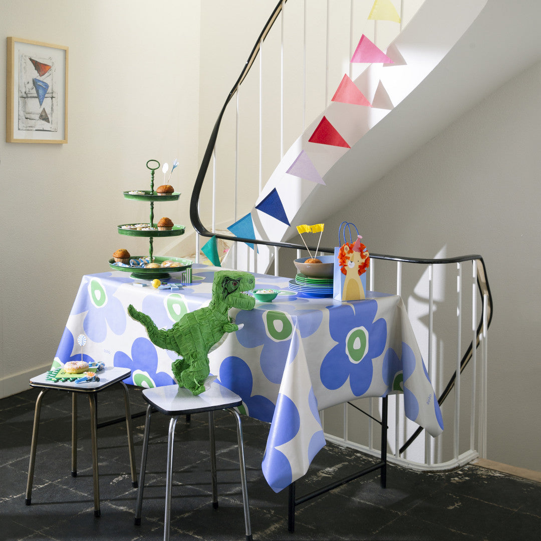 De store blomstene dekker bordet og skaper glede og kreativitet som løfter stemningen. Dette er en voksduk som inspirerer – perfekt for deg som liker å gå all in med farger og mønster.