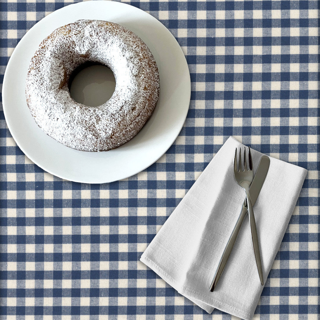 Et klassisk rutemønster i dyp blå og natur gir denne akrylduken et tidløst og koselig uttrykk. Det enkle designet passer perfekt til både landlig sjarm og moderne minimalisme, noe som gjør den velegnet til alle typer borddekking.