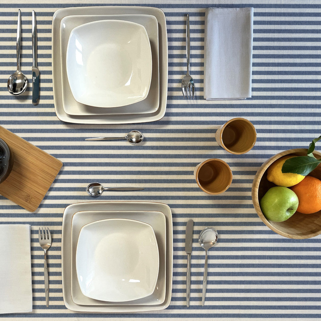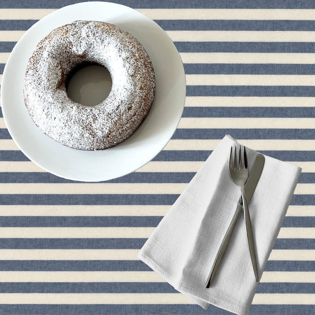 Skap en tidløs og stilren borddekking med Blå Nordisk Stripe – en vakker akrylduk i hørlook med klassiske blå og naturfargede striper. Det enkle, men elegante designet passer perfekt til både moderne og landlige hjem og gir bordet et harmonisk uttrykk.