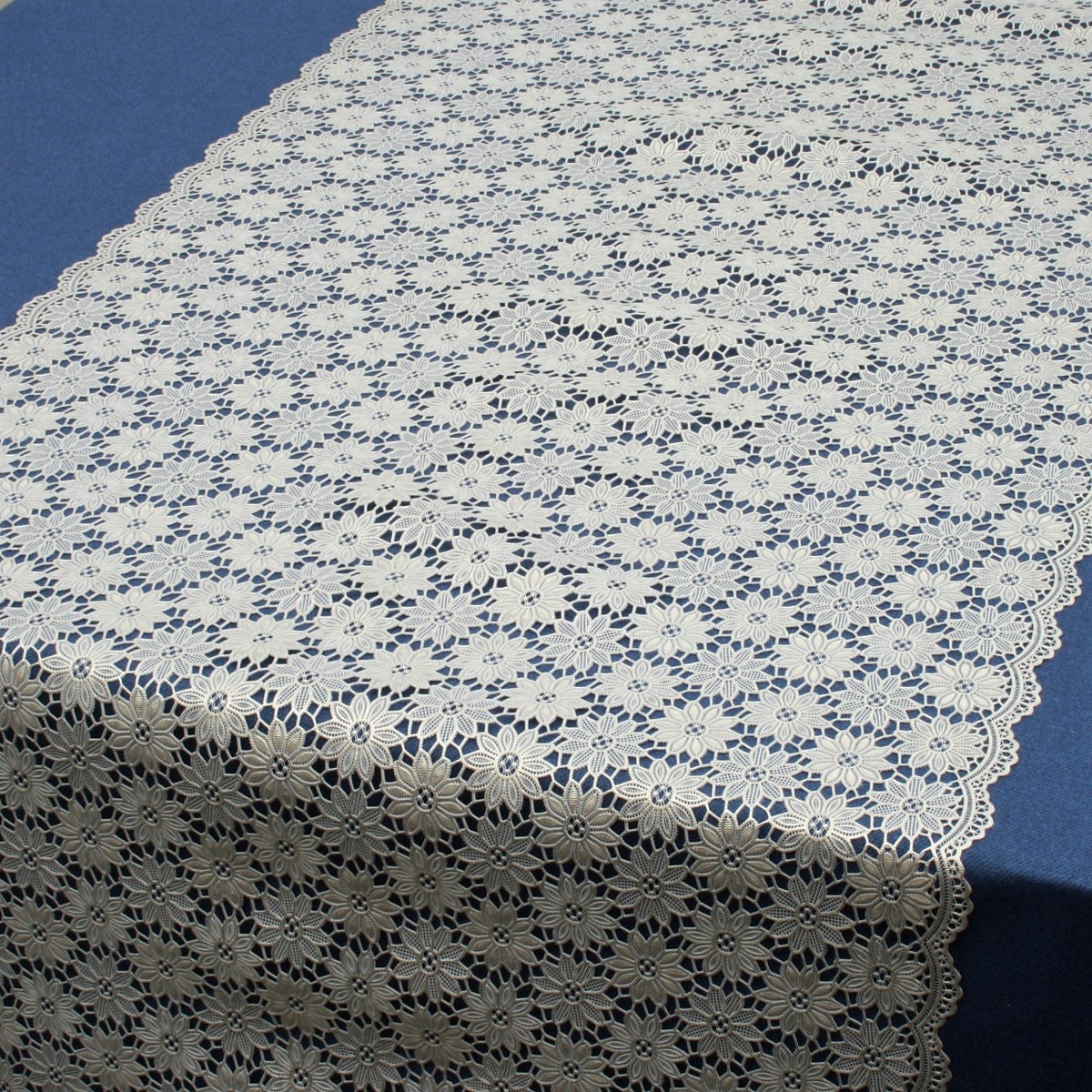 Bordløper – blondeduk med liten blomst, hvit/sølv