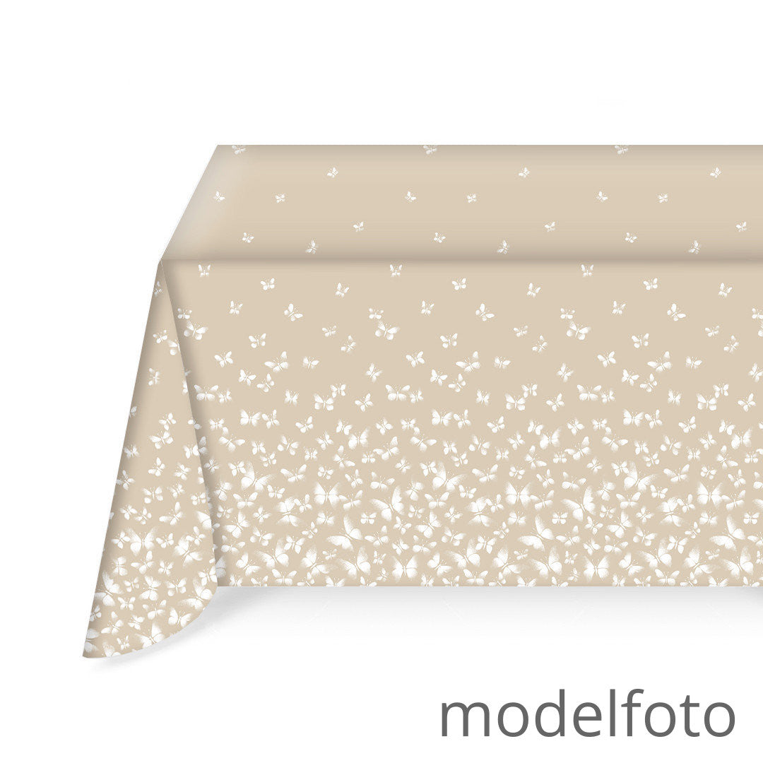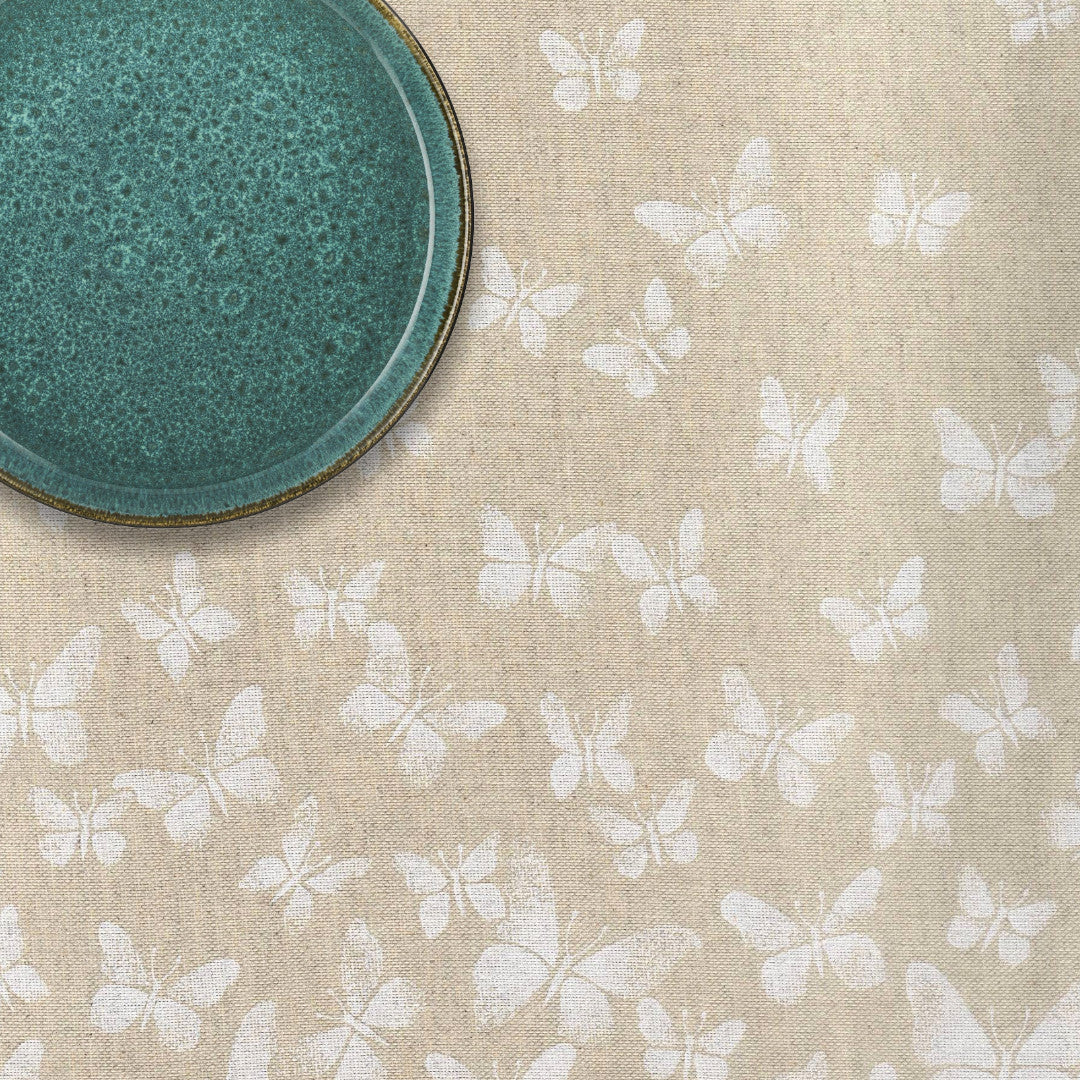 Butterfly – Akrylduk i hørlook med hvite sommerfugler er i restordre og sendes så snart varen er på lager igjen.