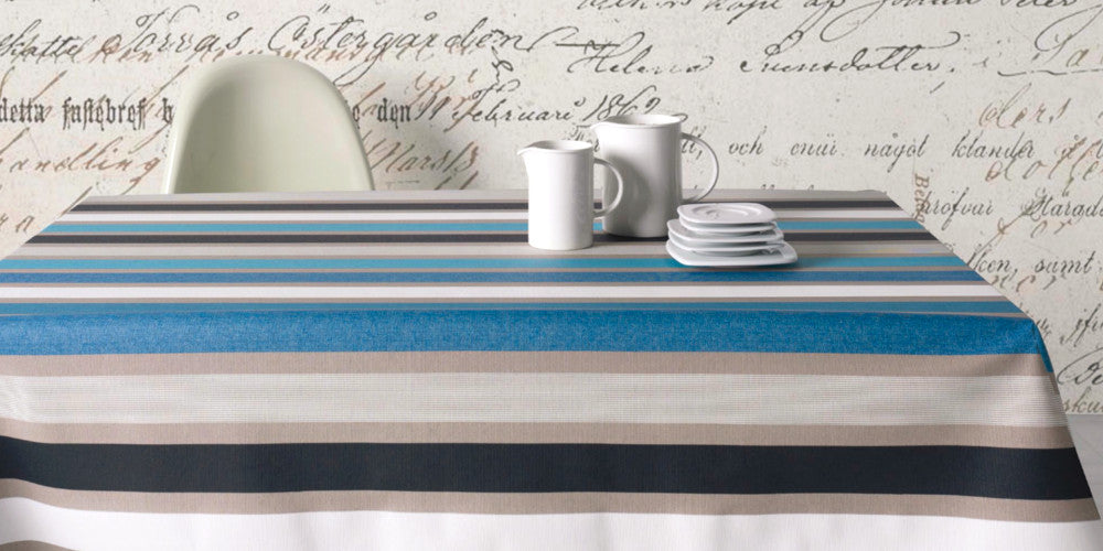 Caravaggio blå, akrylduk med striper, 160 cm bred