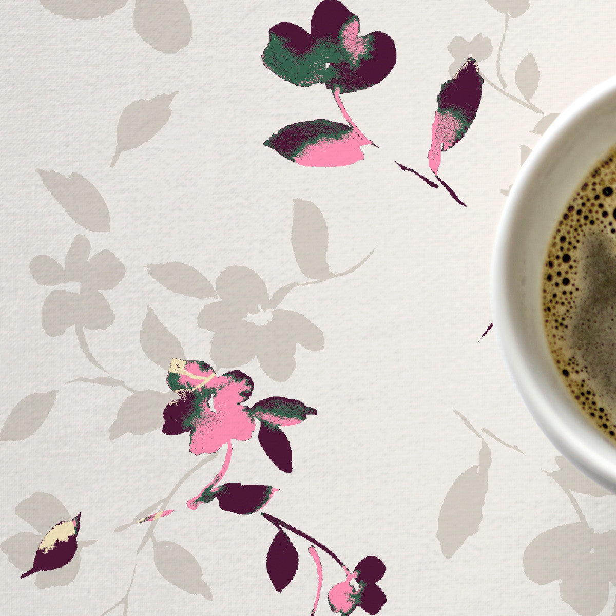 Cherry Blossom Pink fra Södahl er en elegant akrylduk med et delikat kirsebærblomstermotiv i rosatoner og grå nyanser. Mønsteret skaper et harmonisk og feminint uttrykk som passer perfekt til både moderne og klassisk borddekking. De myke fargene mot den lyse bakgrunnen gir et lett og stilrent preg som løfter enhver borddekking.