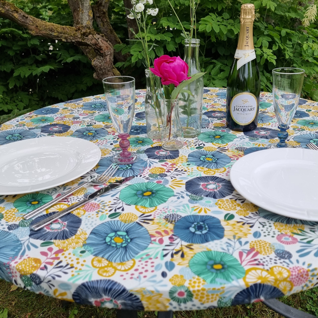 Chidori blå – Rund akrylduk med strikk er i restordre og sendes så snart varen er på lager igjen.