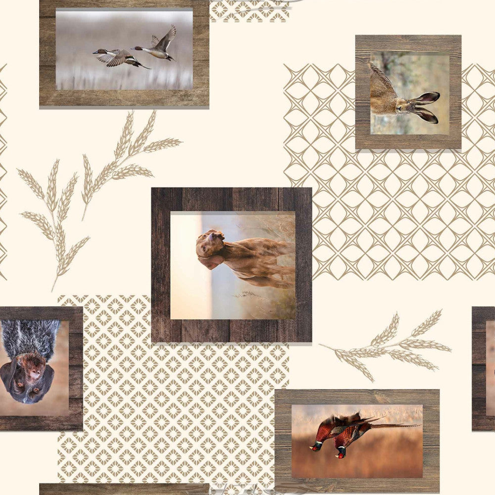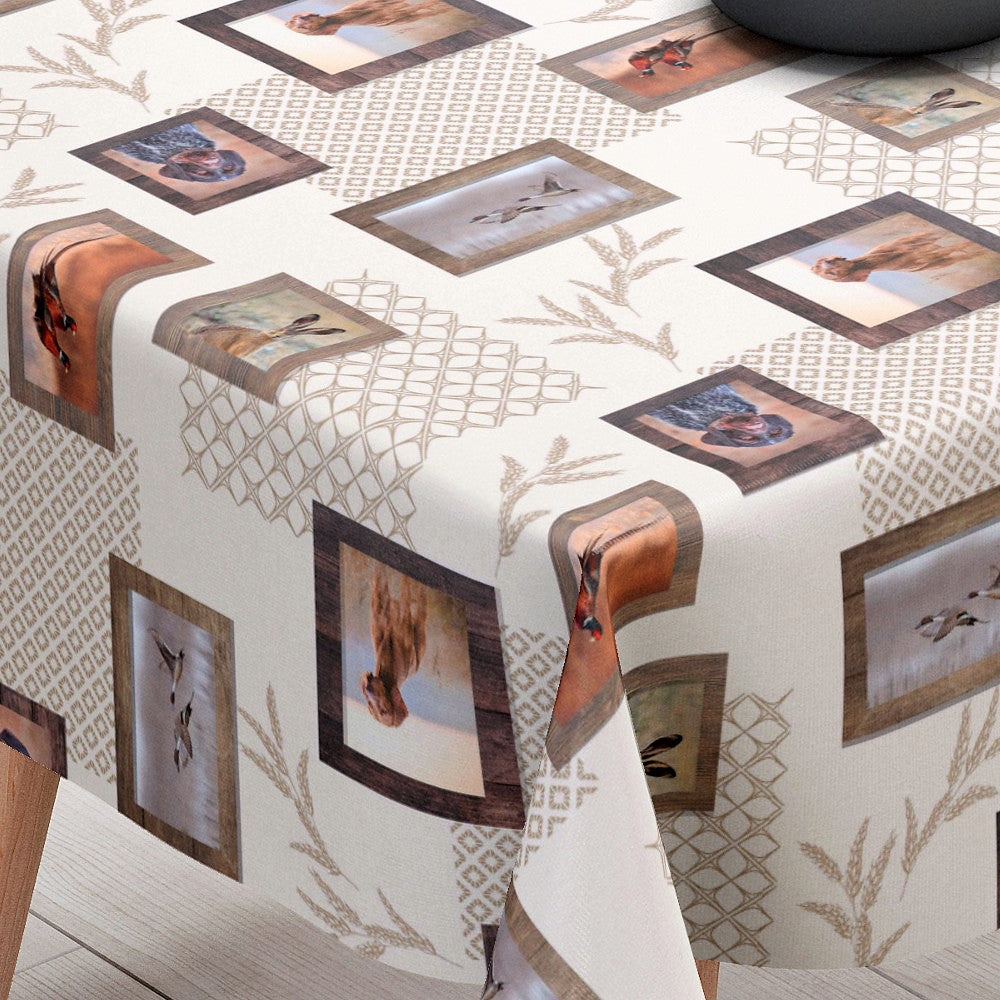 Colvert – Voksduk med jaktmotiver, gråender, jakthunder, harer og fasaner