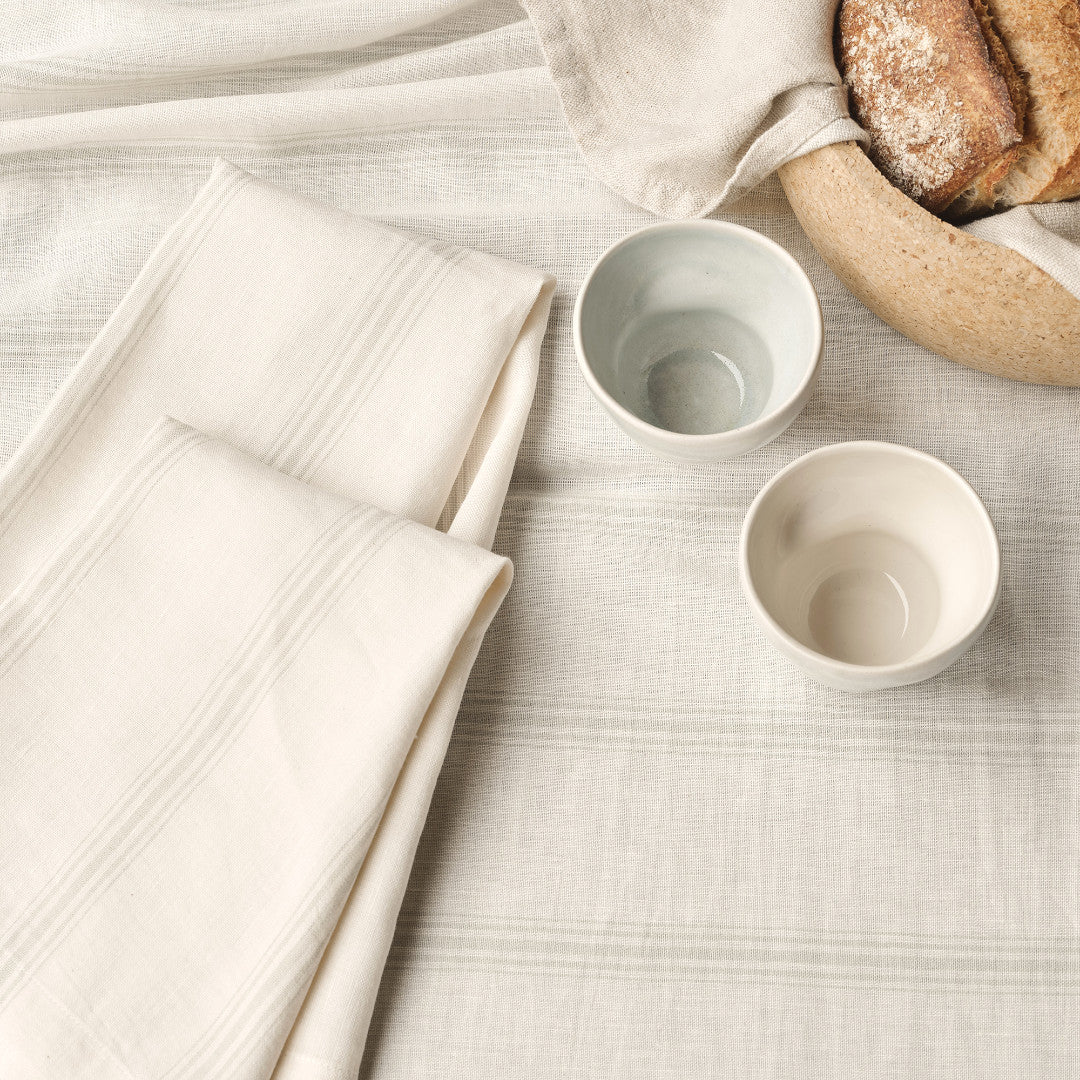 Gi bordet ditt et lett og elegant uttrykk med denne luftige duken i en vakker blanding av lin og bomull – perfekt til både runde og kvadratiske bord. De diskrete grønne stripene mot den lyse ecru-bunnen skaper en tidløs og frisk stemning, ideell til vår- og sommerborddekking.