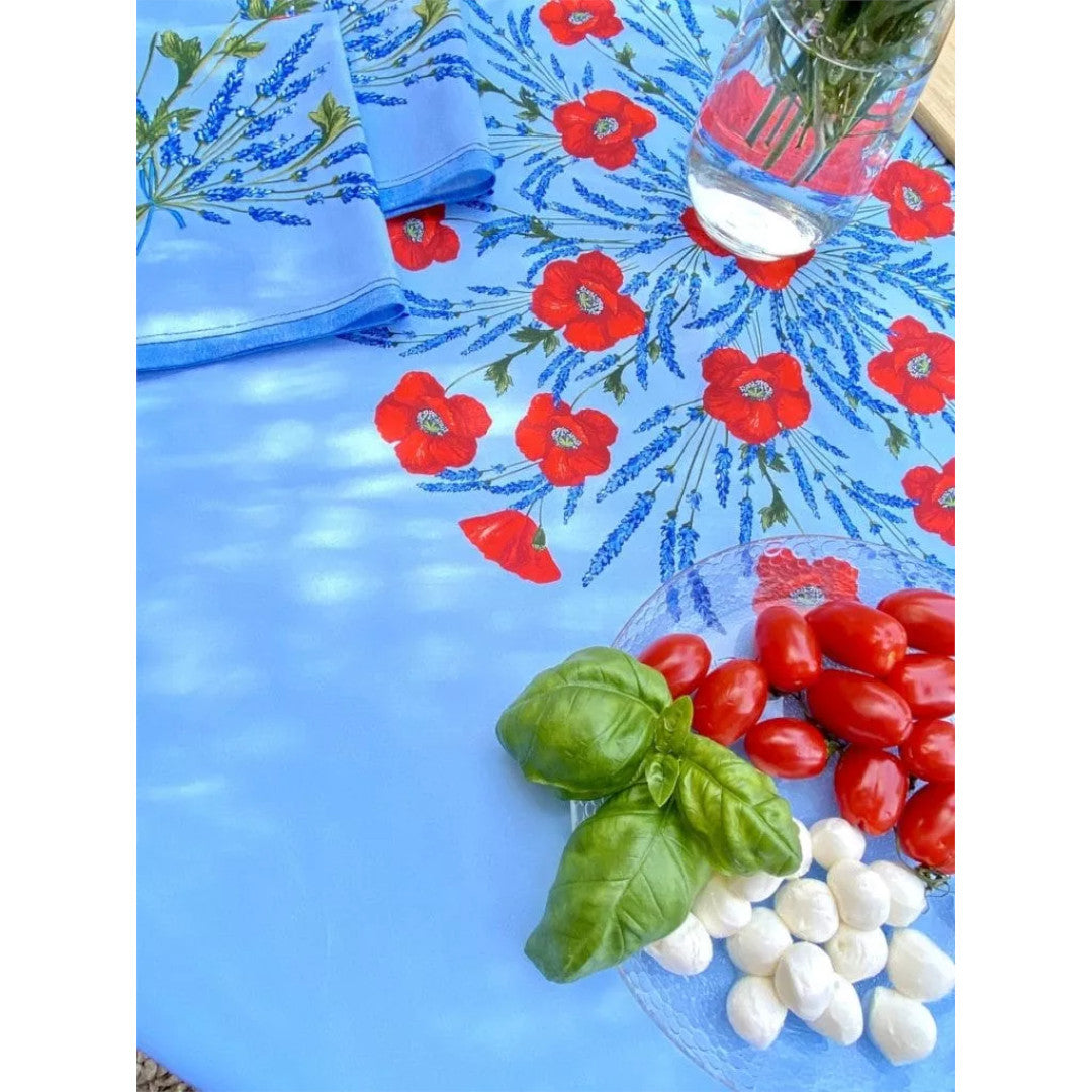 Coquelicot Lavande Blå – Rund akrylbelagt provenceduk Ø 180 cm