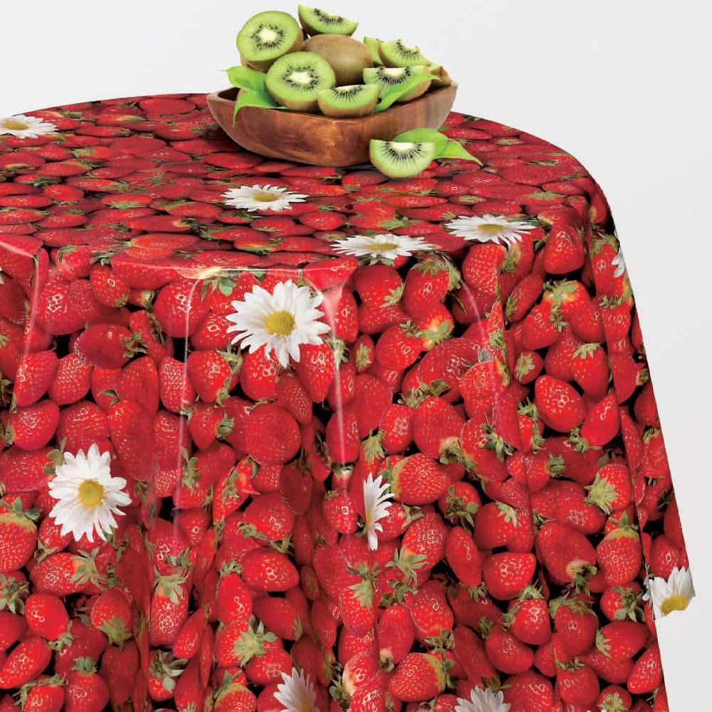 Dansk Sommer - Voksduk med jordbær og margeritter