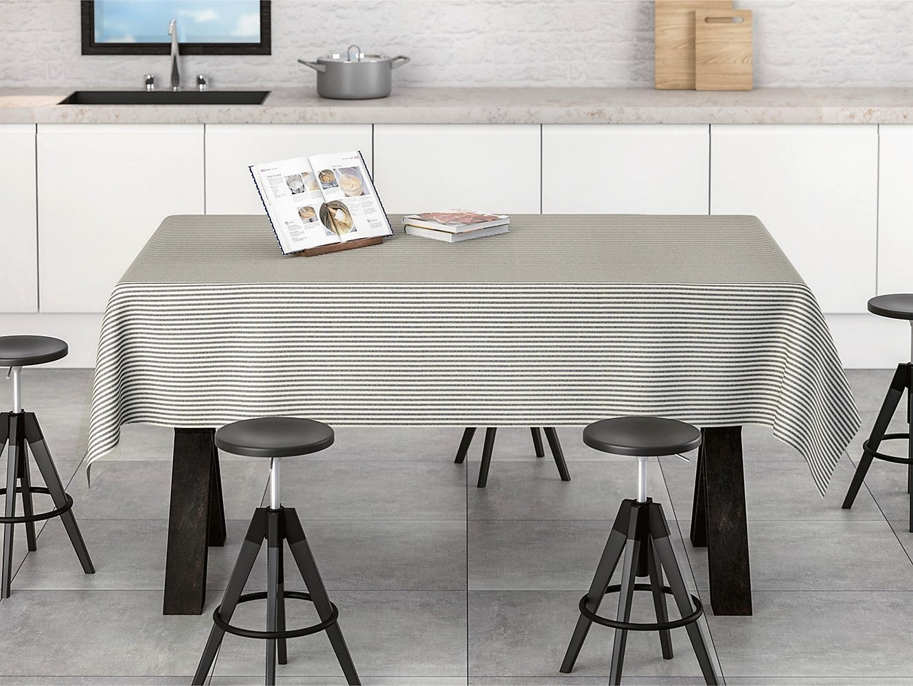 - Strykes på lav varme (maks. 110 °C) – med mindre duken har sklisikker bakside, som ikke må strykes