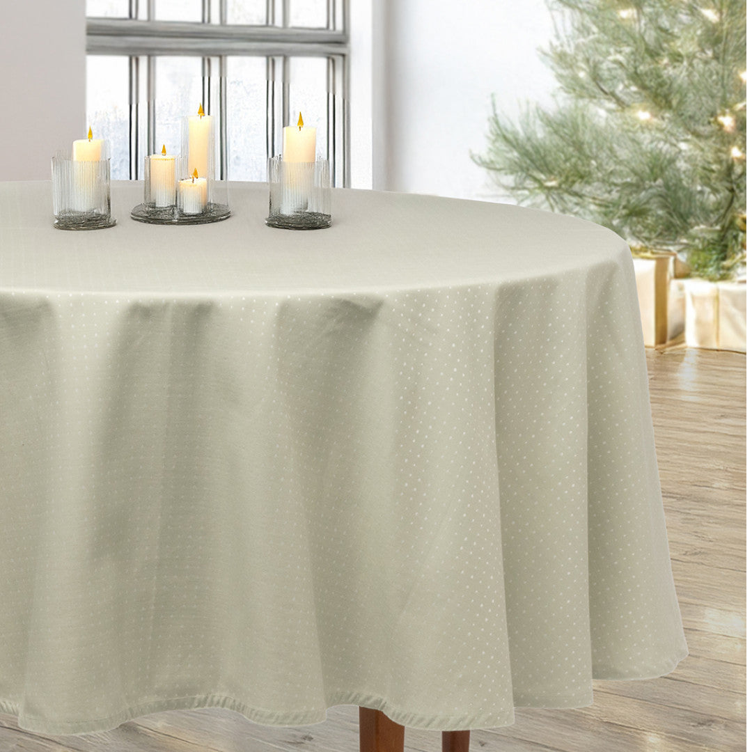 Dotea Sage - Rund damaskduk med prikker Ø 200 cm