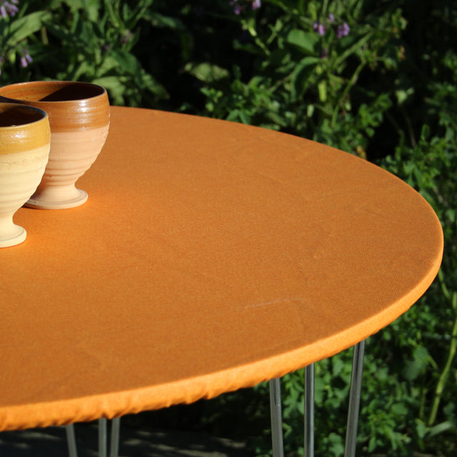 Ensfarget akrylduk i appelsin - rund akrylduk med elastisk kant