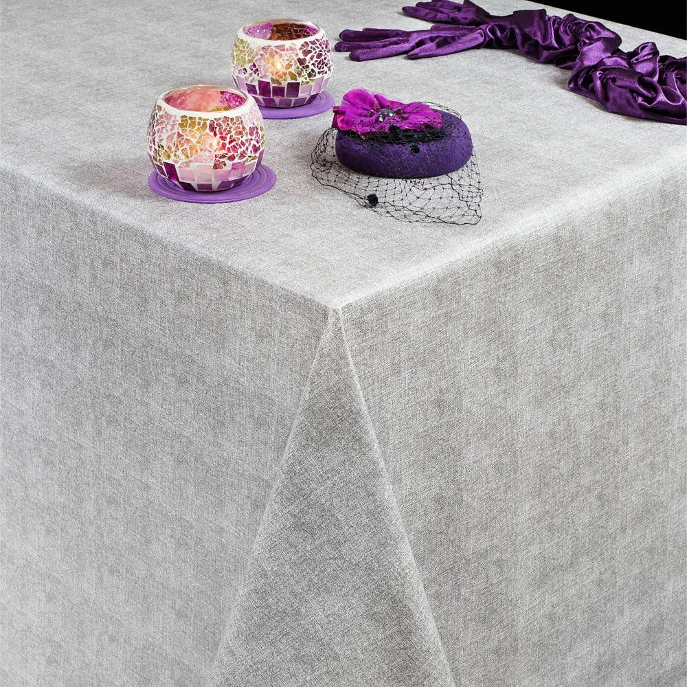Ensfarget linlook i grå – Rund voksduk med strikk