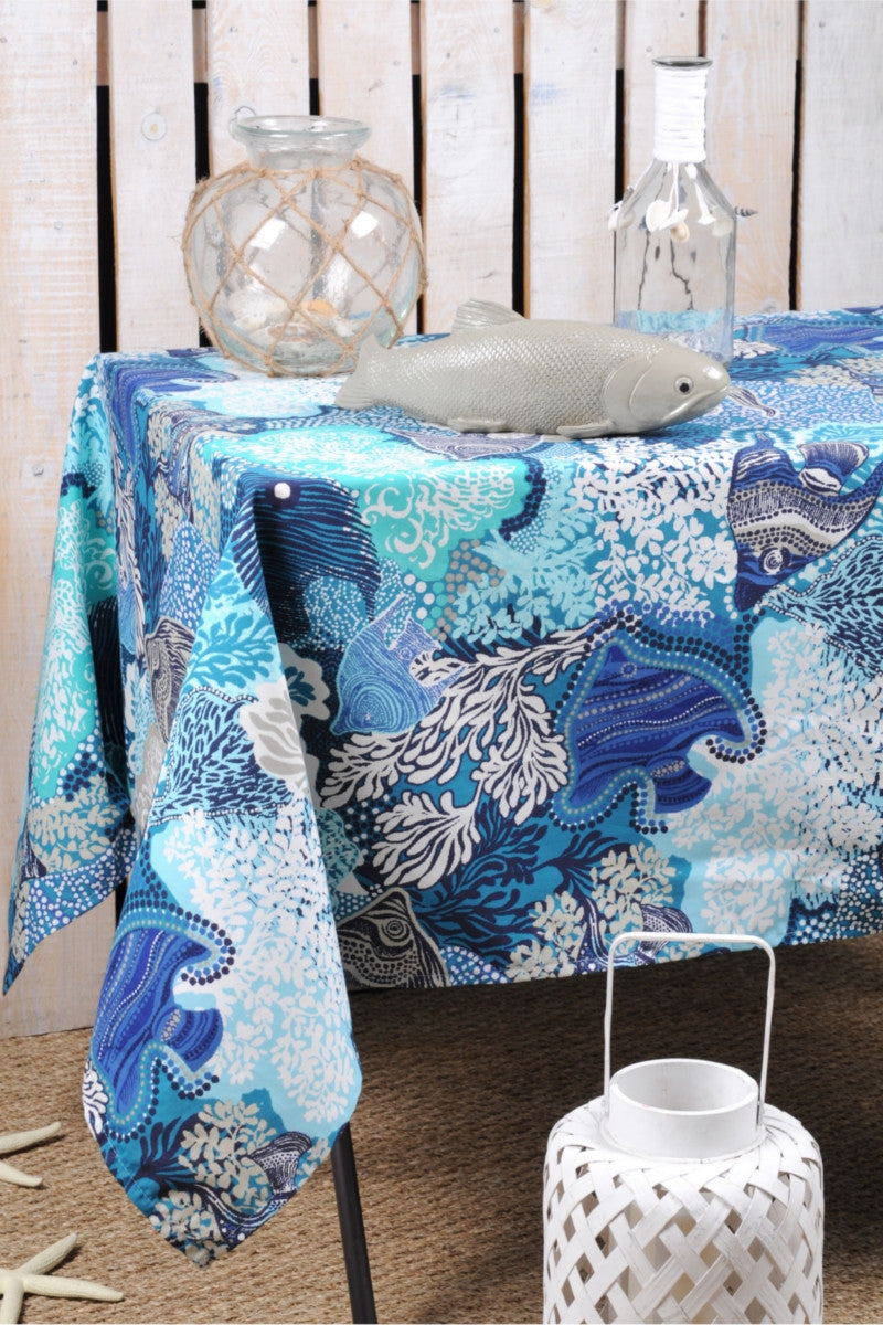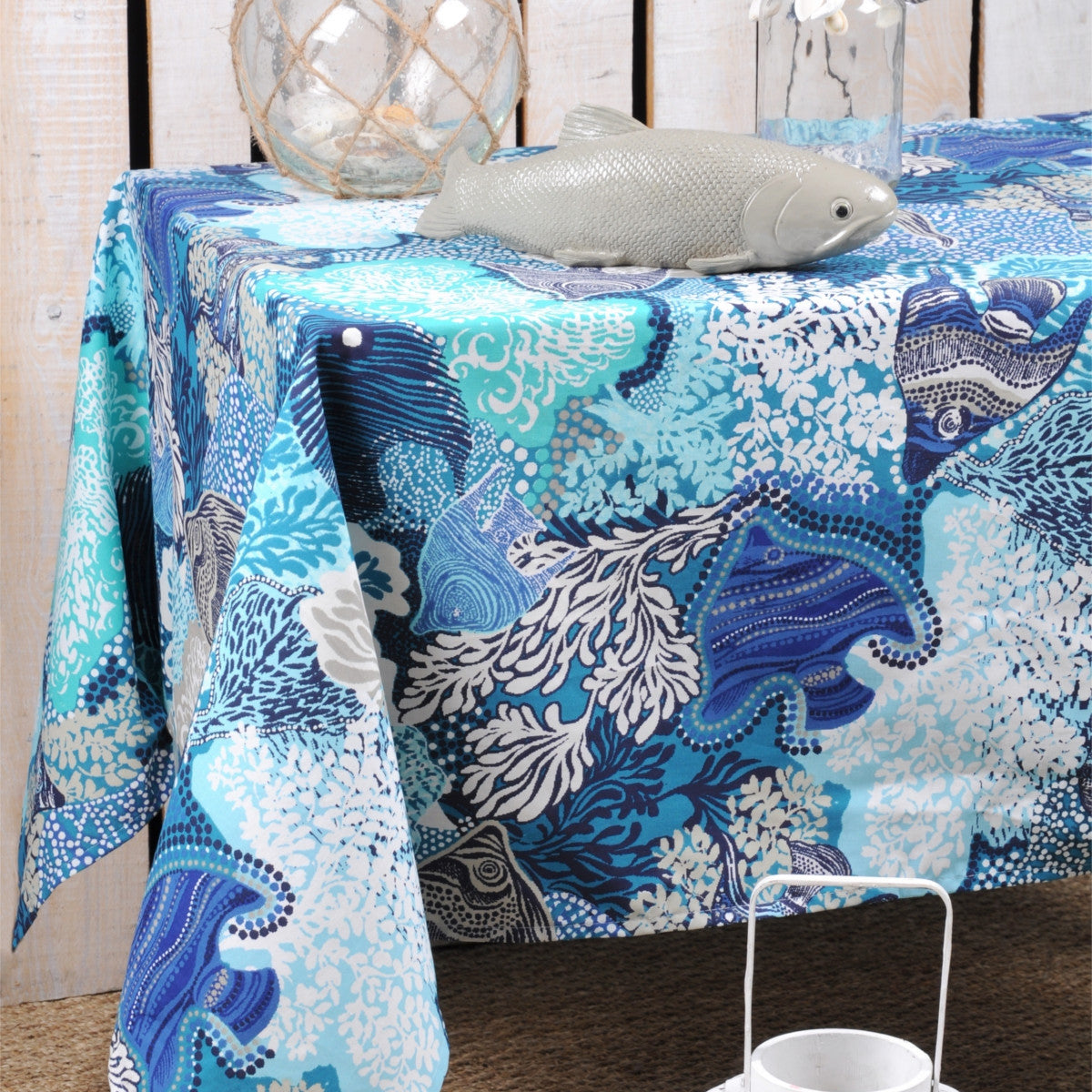 Exofish blå, Laura Lancelle akrylduk – 155 cm bred
