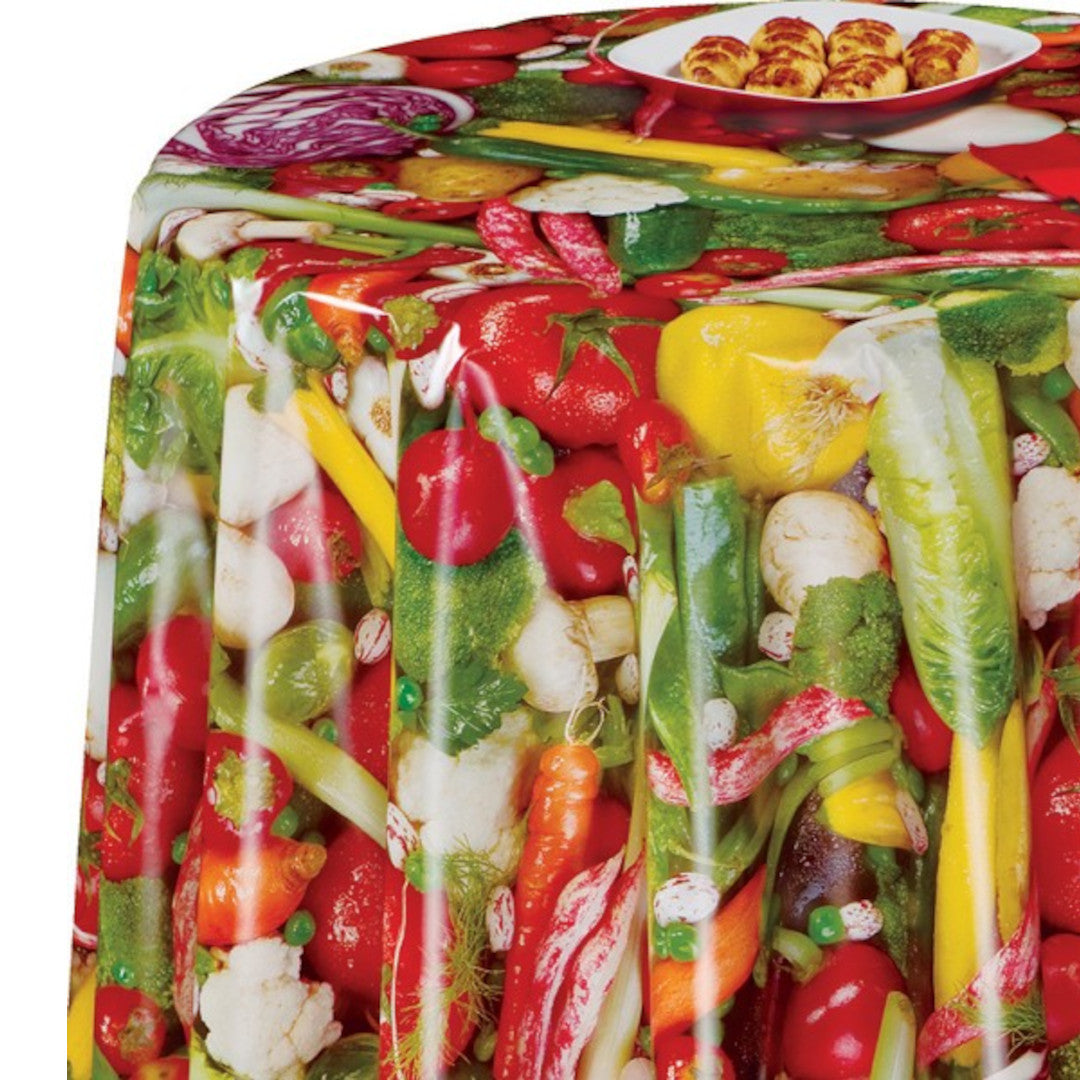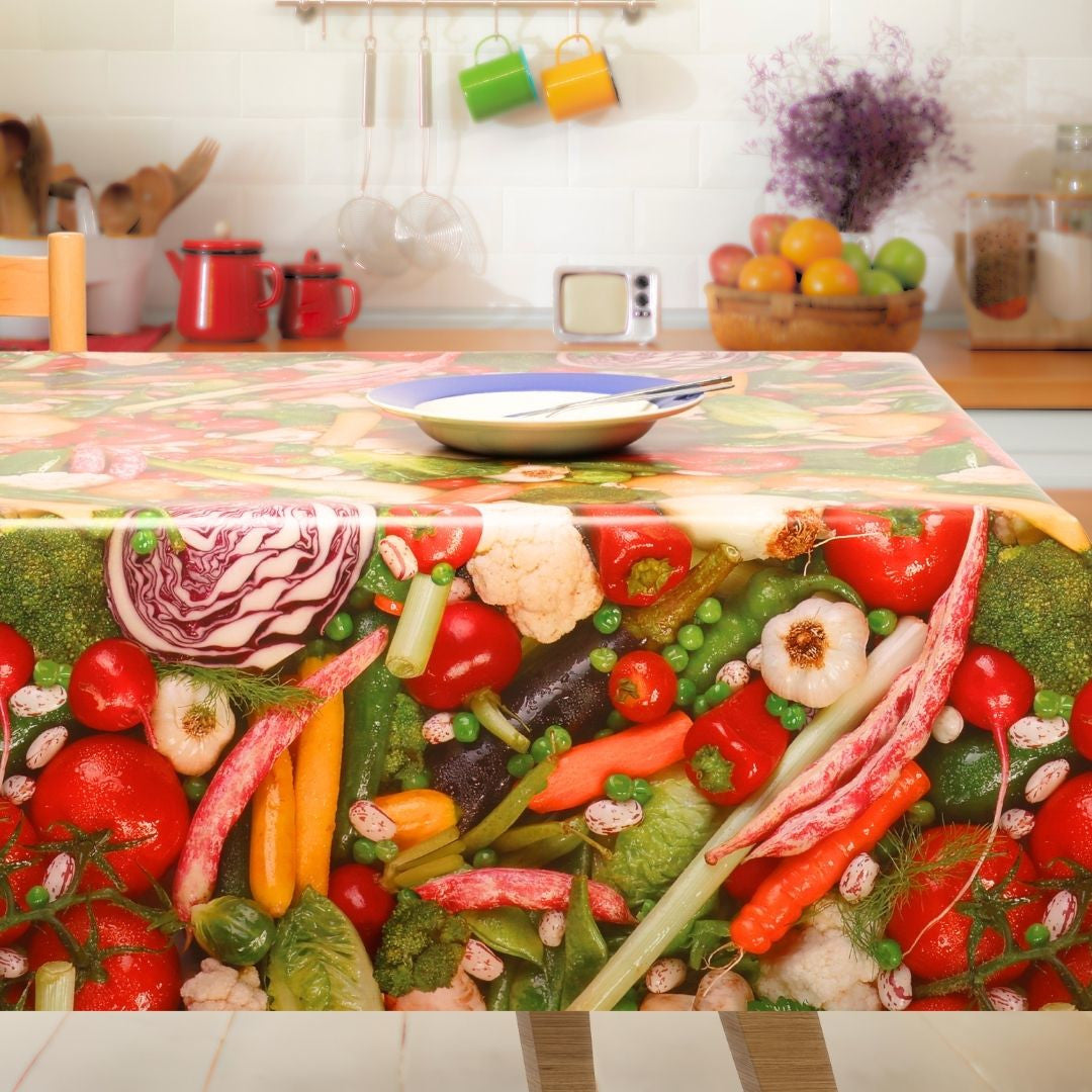 En praktisk og dekorativ voksduk som kombinerer funksjonalitet med livlige farger og matglede.