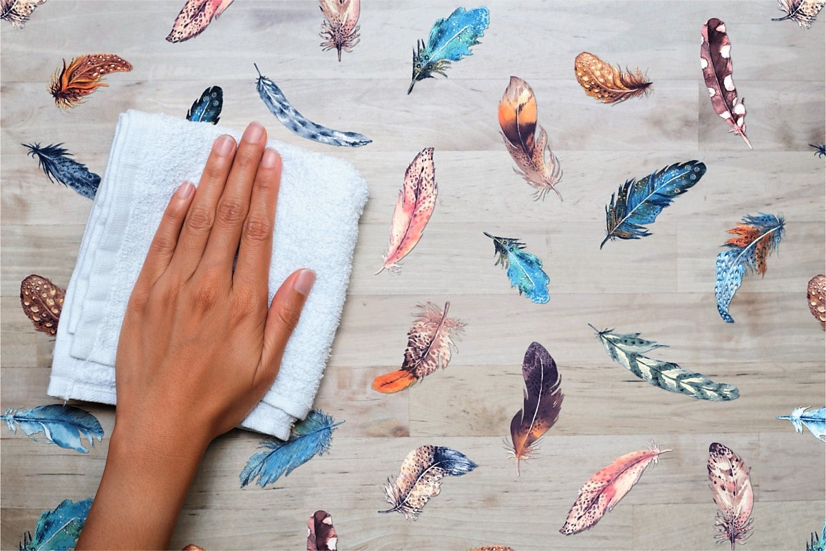 - Bruk alltid en bordskåner når du håndterer varme gjenstander, siden PVC reagerer på varme og kan få permanente ringer. Både en kopp te og en tallerken med varm mat kan forårsake slike merker.