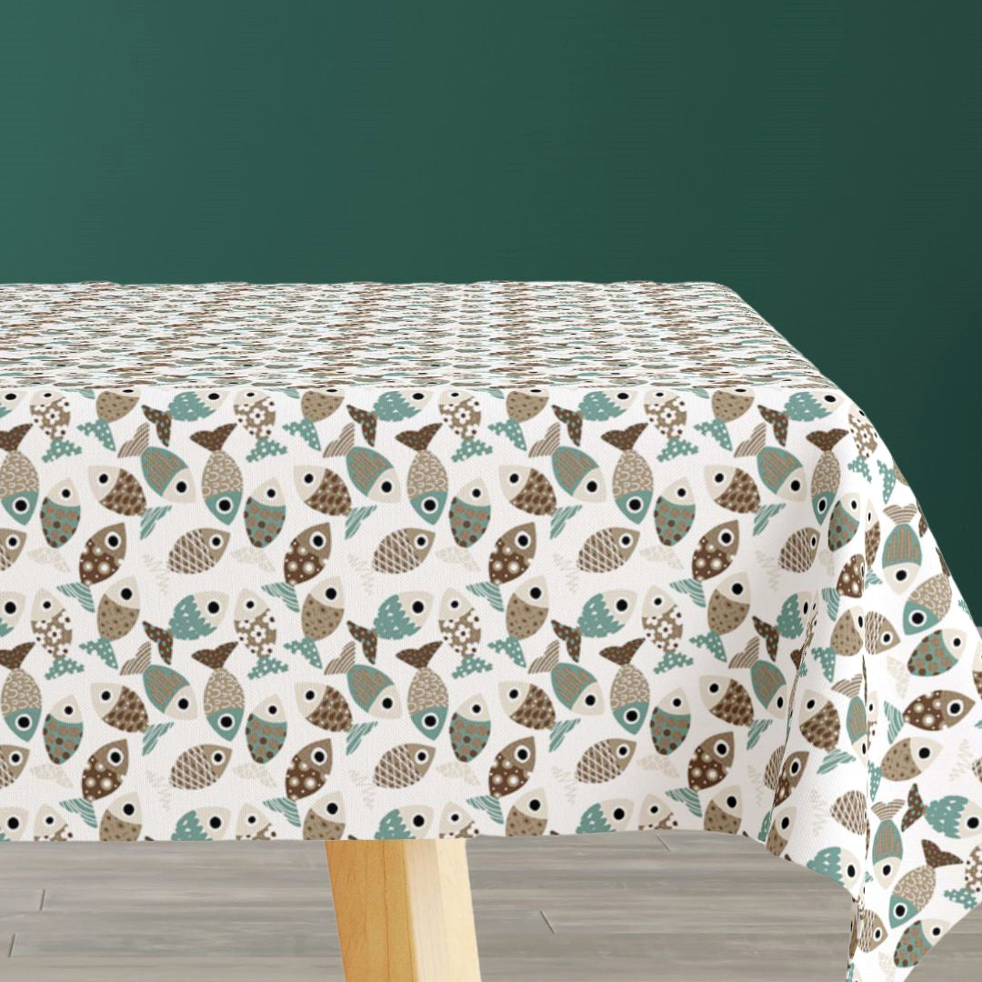 Fisk i Lek - Lys akrylduk med små fisker er i restordre og sendes så snart varen er på lager igjen.