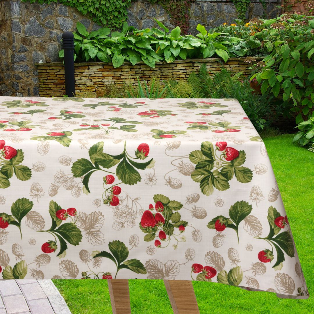 Fraises Danoises - Akrylduk i vakkert hessianlook med jordbær - 155 cm bred
