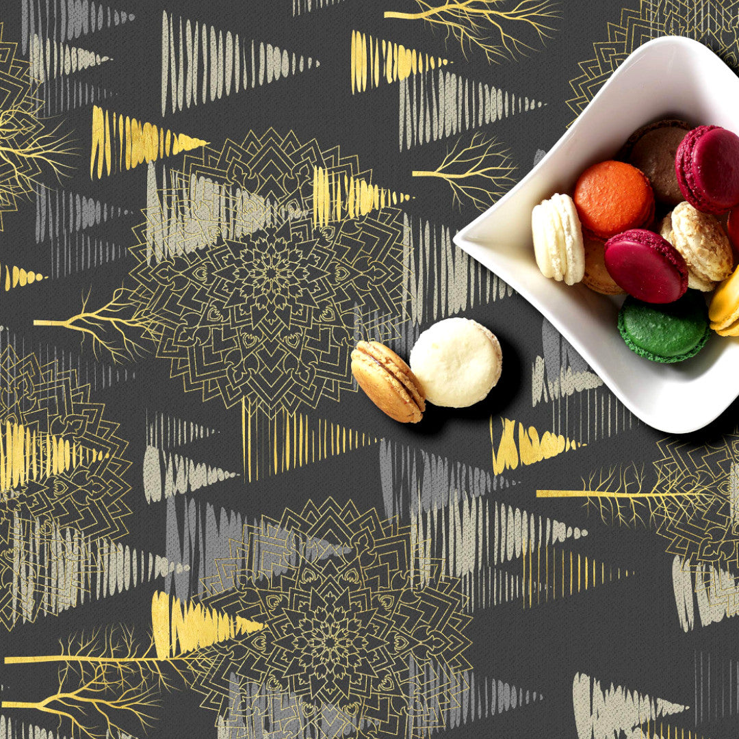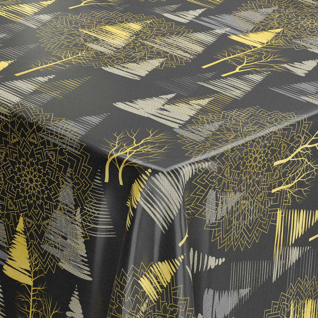 Golden Trees – Mørk grå voksduk med gyldne juletrær og trær