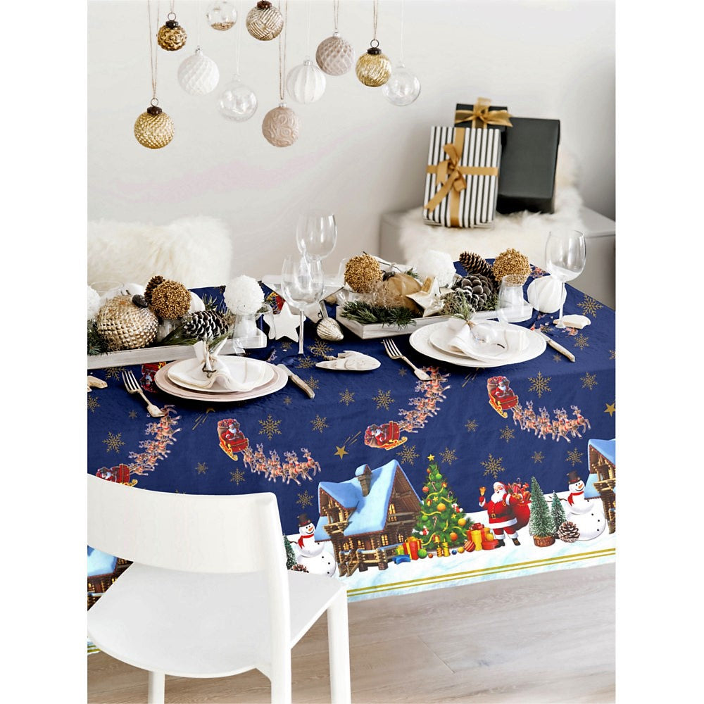Grignols Blå – Festlig julevoksduk med julenissen og snømenn