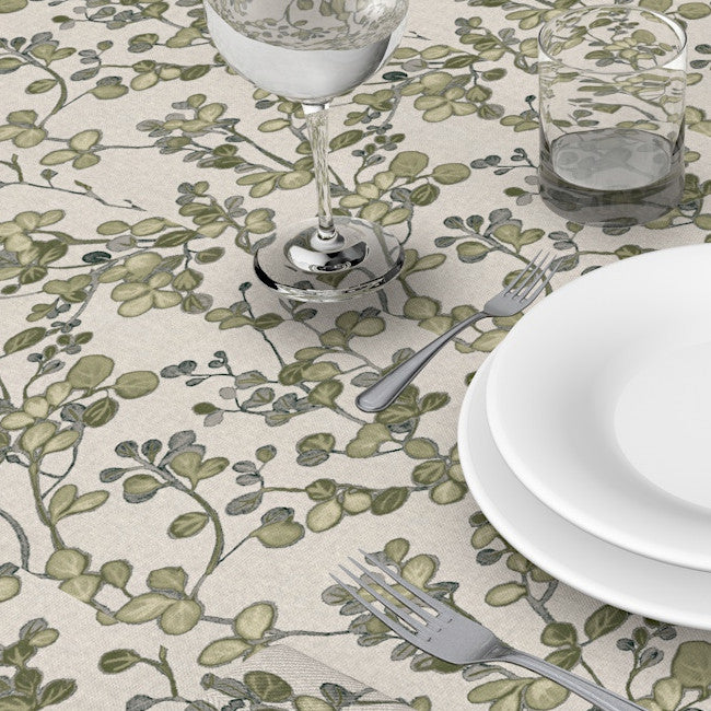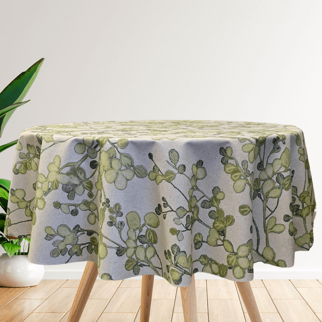 Skap en naturlig og innbydende stemning med Grønn Villvin – en vakker akrylduk i hørlook med et botanisk og lett rustikt uttrykk. De slyngende grønne grenene og myke bladene danner et levende mønster som bringer naturens ro og friskhet inn i hjemmet.