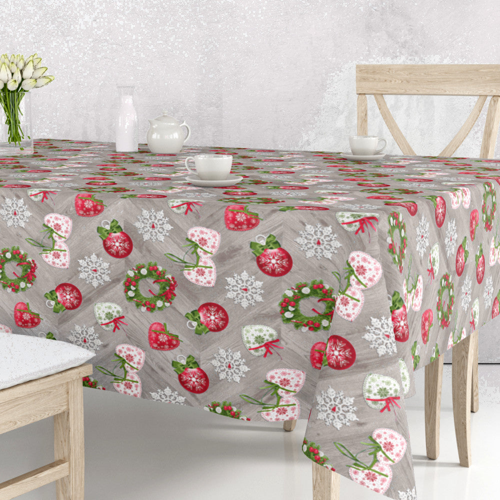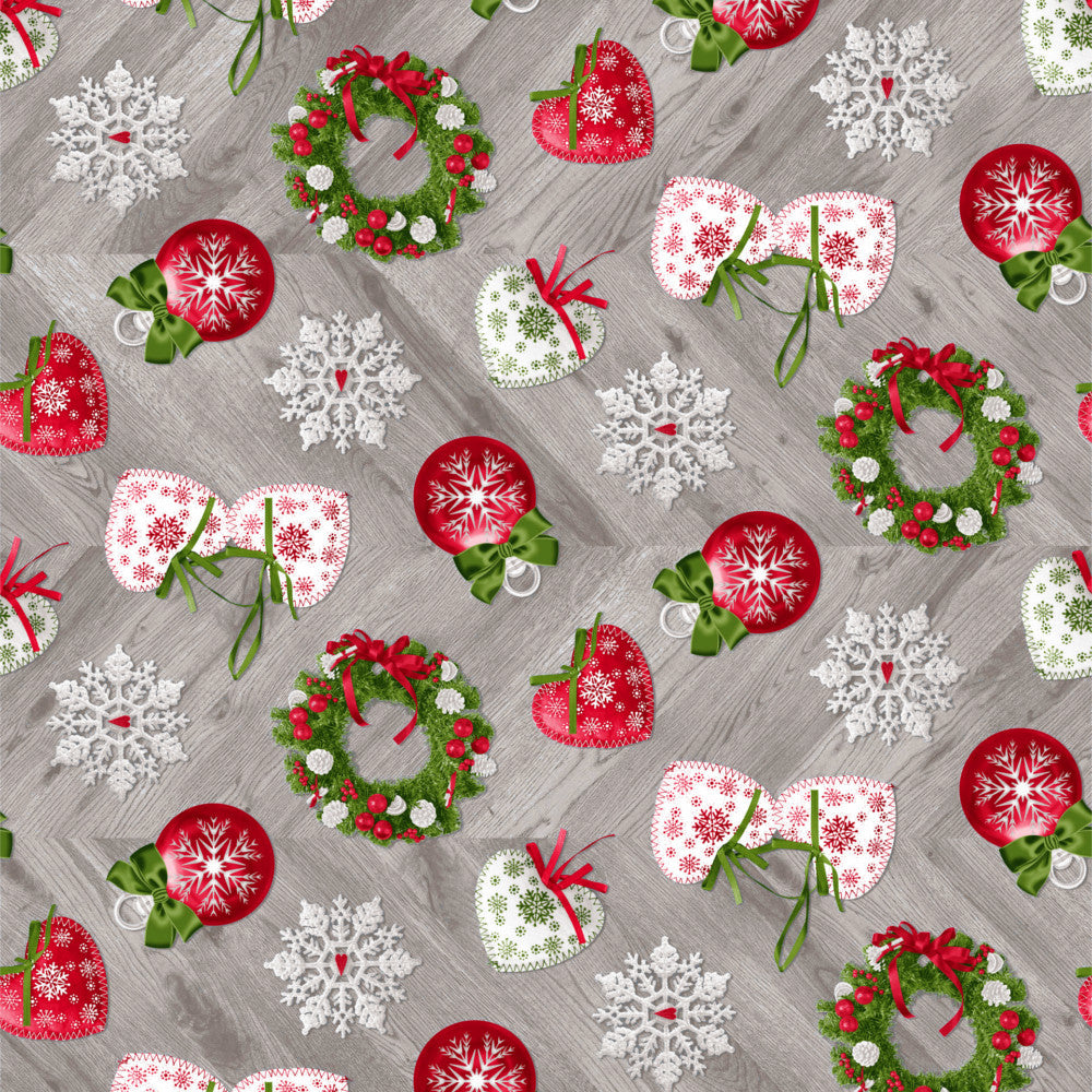 Guirnalda Grå – Romantisk juleakrylduk med hjerter, sløyfer, snøkrystaller er i restordre og sendes så snart varen er på lager igjen.