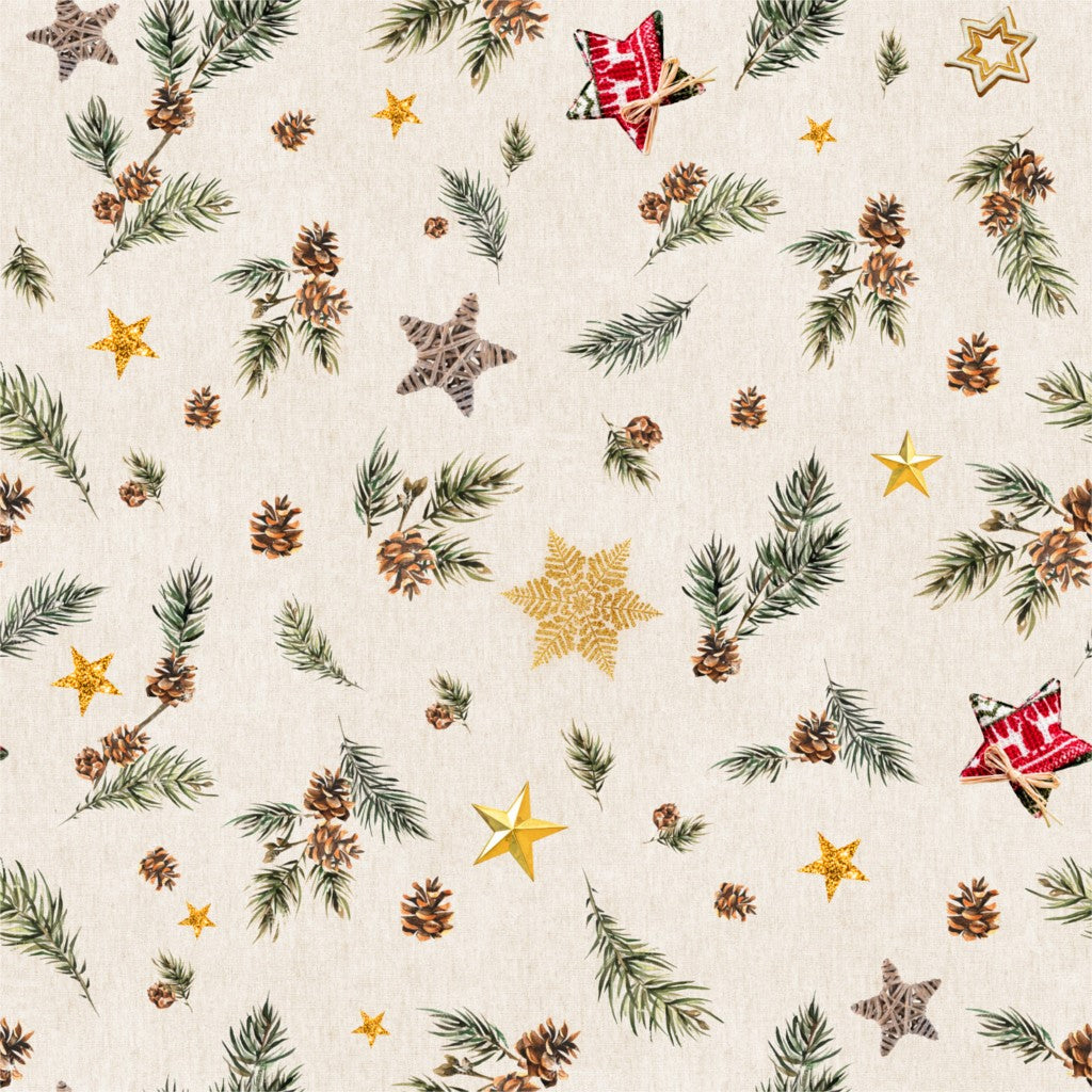 Hogui – Juleakrylduk med små grankvister, kongler og vakre stjerner er i restordre og sendes så snart varen er på lager igjen.
