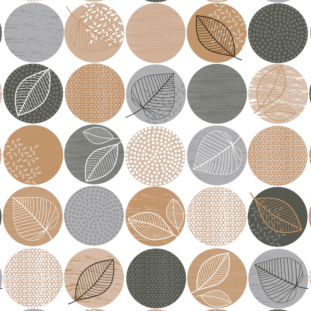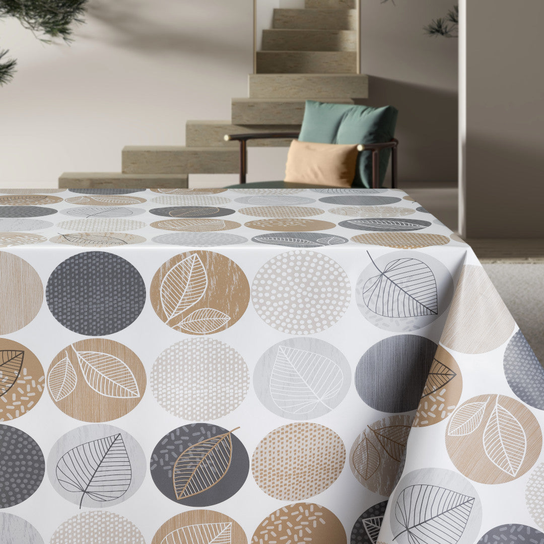 Høstcirkler – voksduk med sirkelmønster og blader i rolige farger