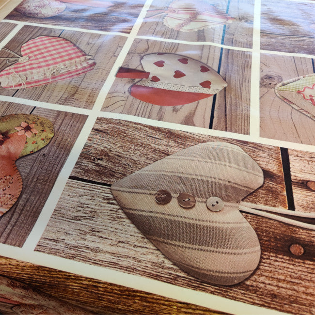Jul med Hjerter – Julevoksduk med romantiske stoffhjerter