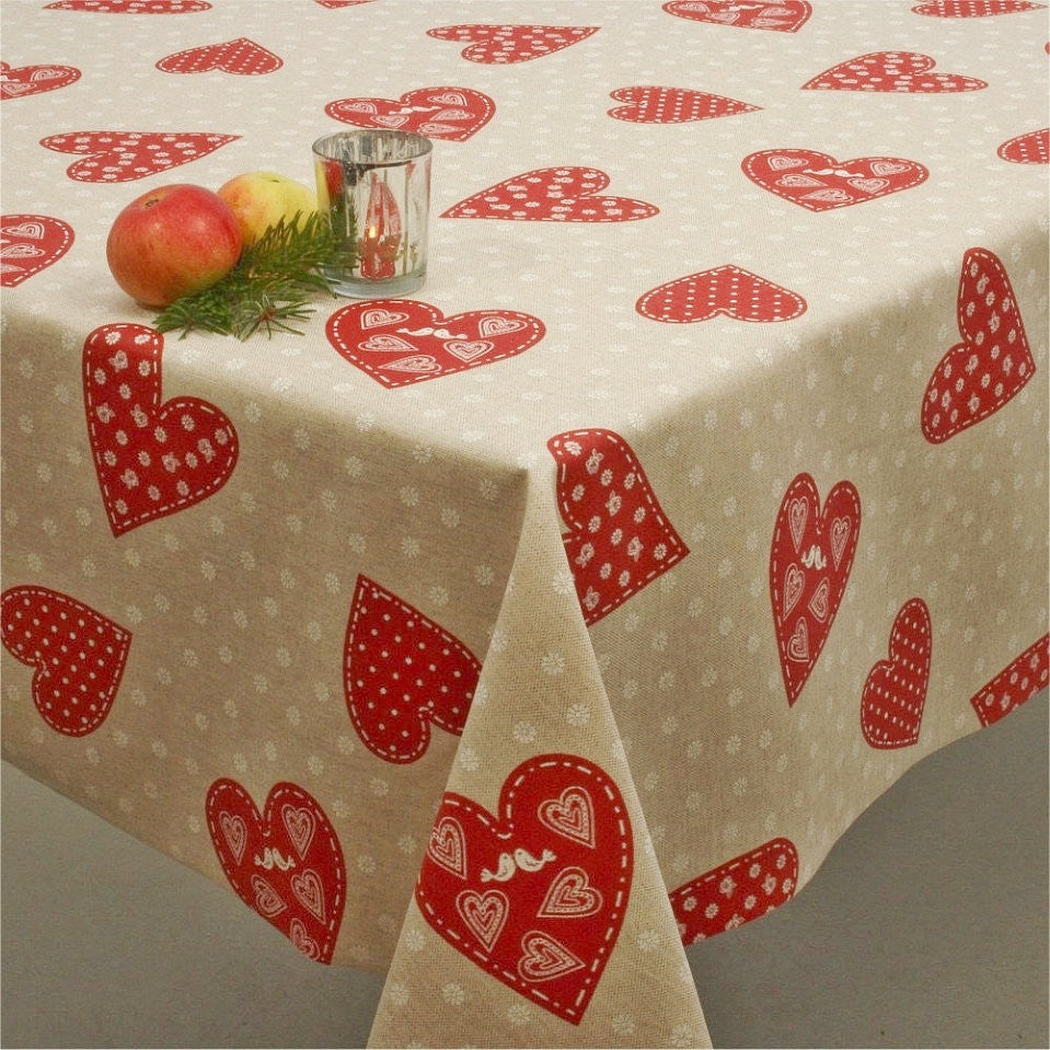Juleduk, akrylduk med julehjerter og turtelduer er i restordre og sendes så snart varen er på lager igjen.