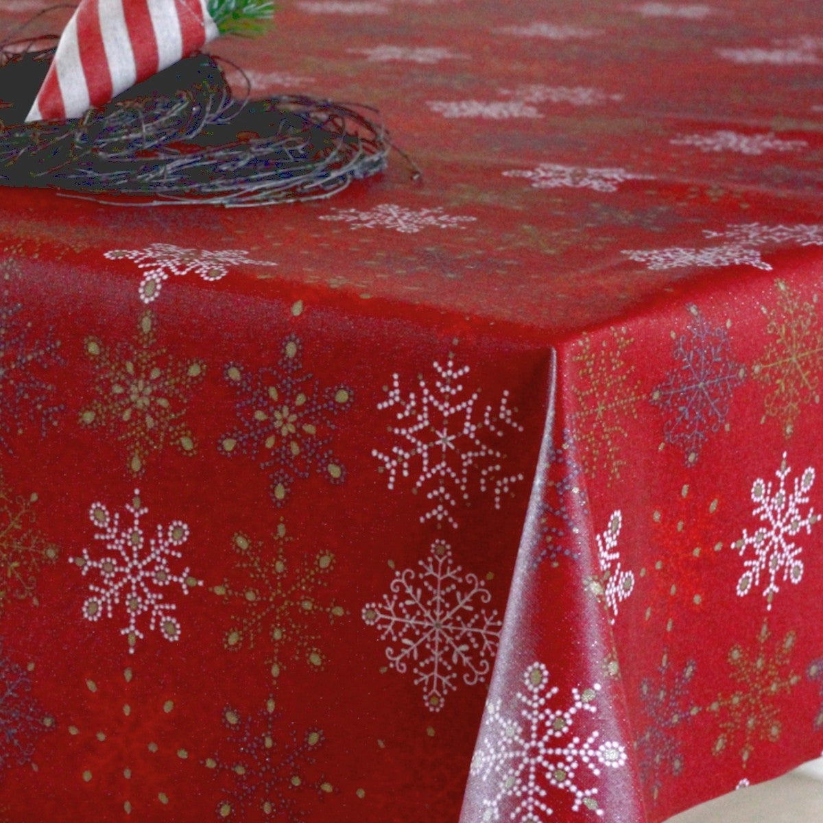 Juleduk Flake Rouge, akrylduk i bomull med lurex – 150 cm bred