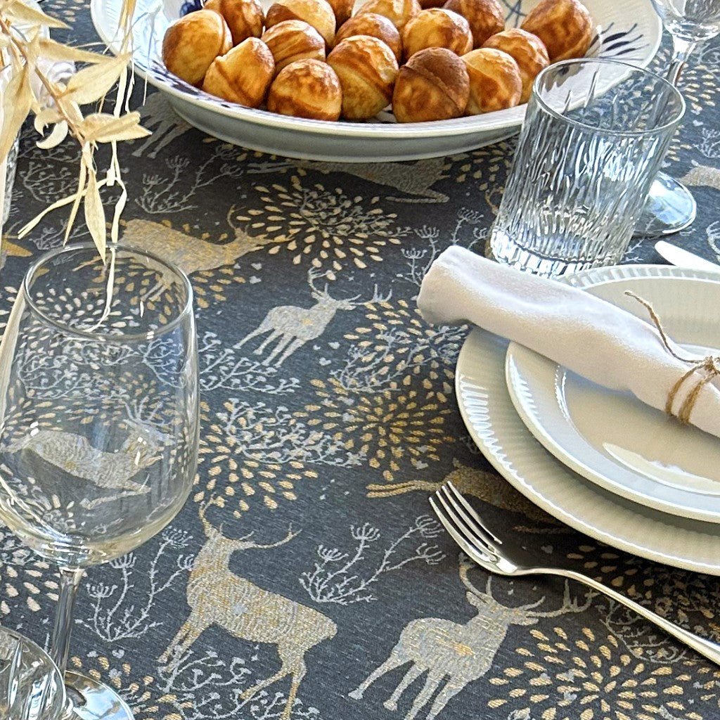 Juleduk Golden Reindeers – Akrylduk med reinsdyr i grått/gull