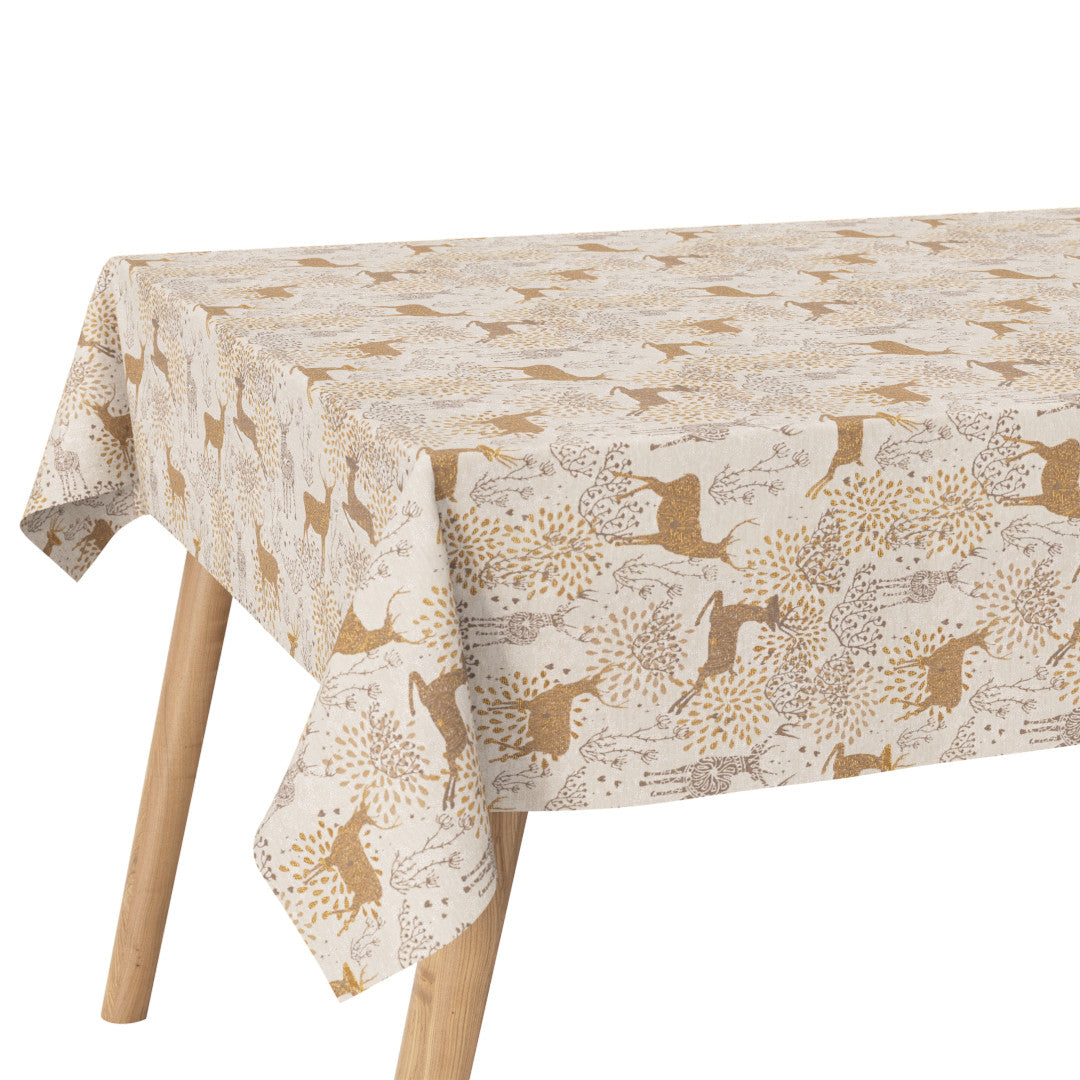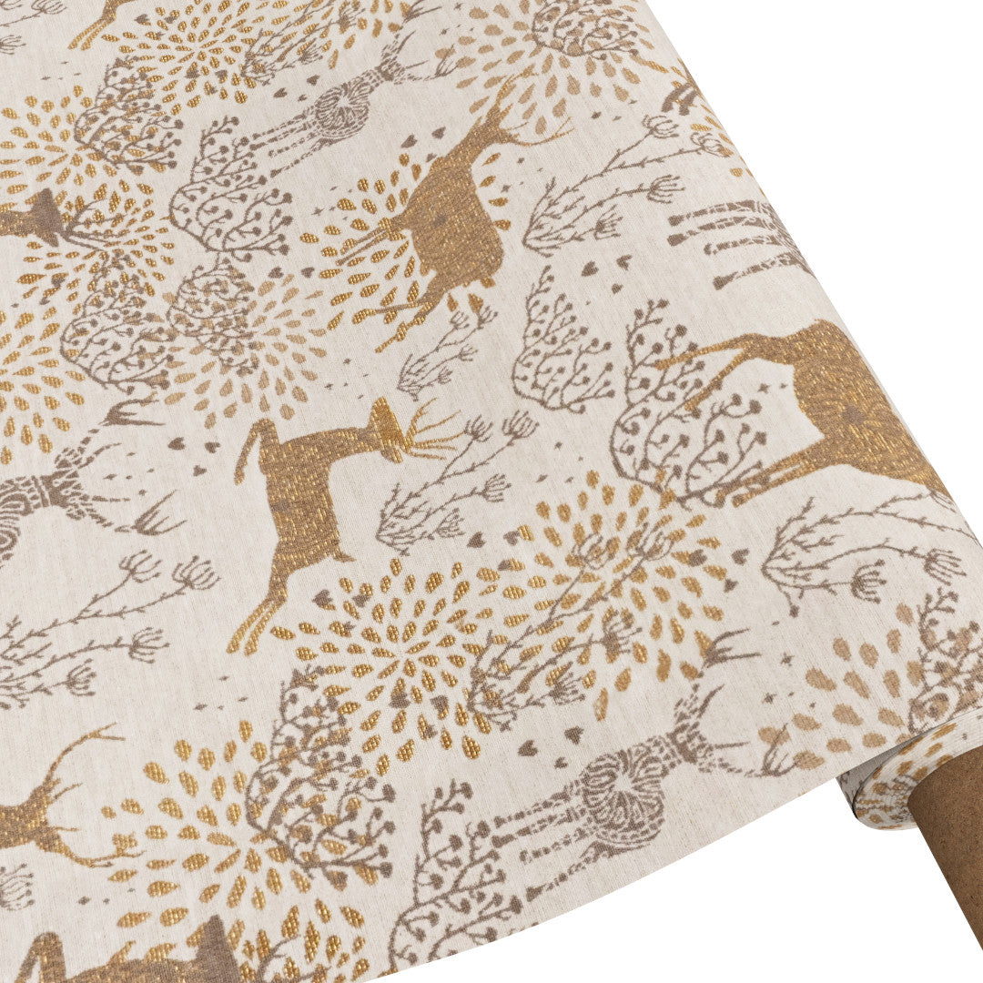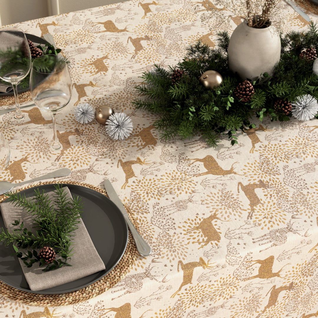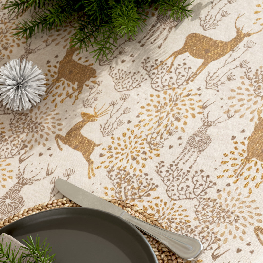 Juleduk Golden Reindeers Natur – Akrylduk i lys natur/gull med reinsdyr og antiskli