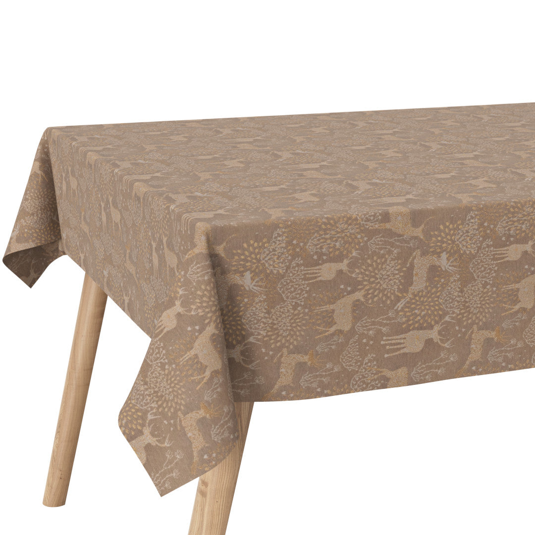Juleduk Golden Reindeers Sand – Akrylduk i sand/gull med reinsdyr og antiskli er i restordre og sendes så snart varen er på lager igjen.