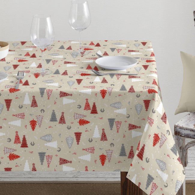 Juleduk med lurex - Akrylduk med festlige juletrær på beige bunn