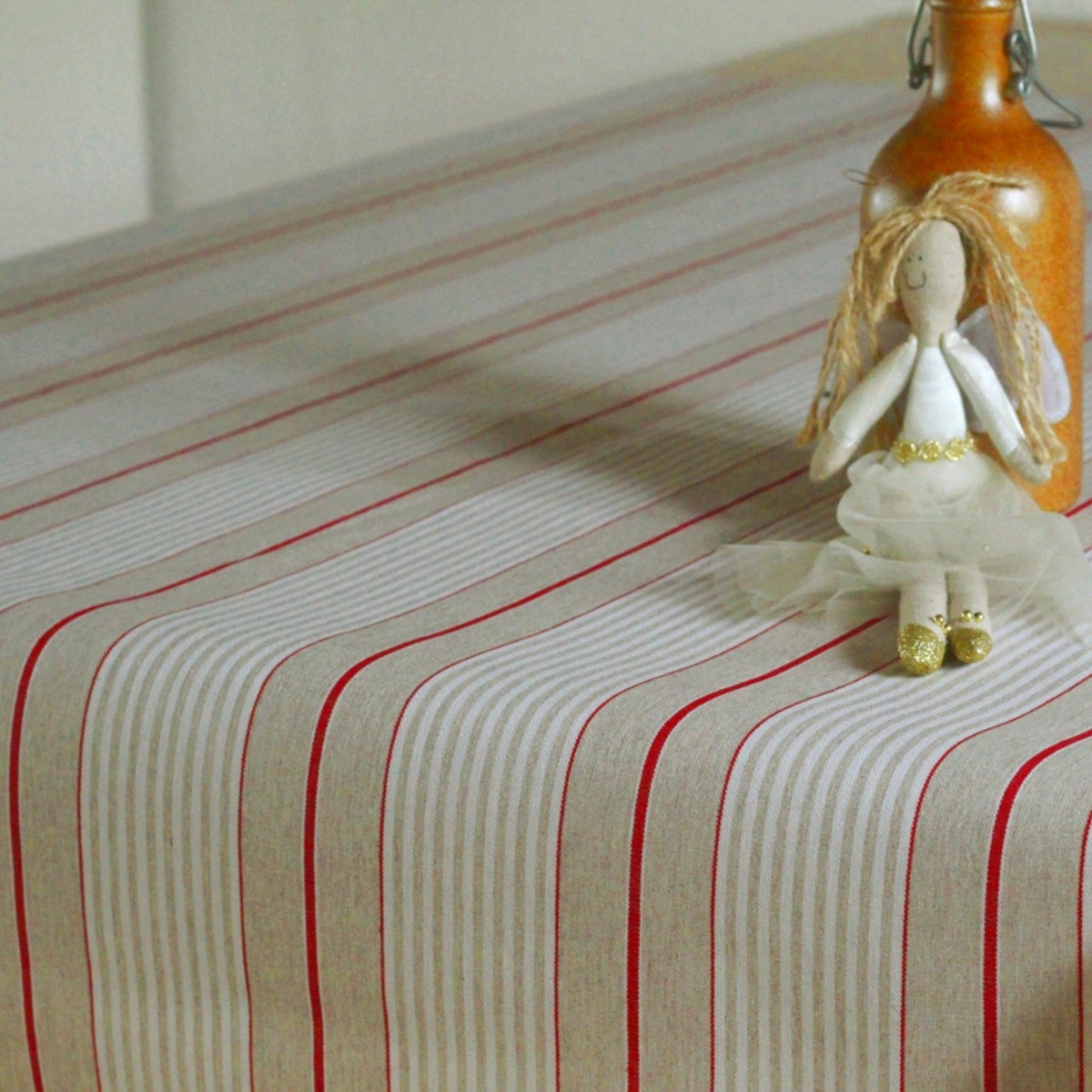 Juleduk Olmer Strib Rød – akrylduk i linlook