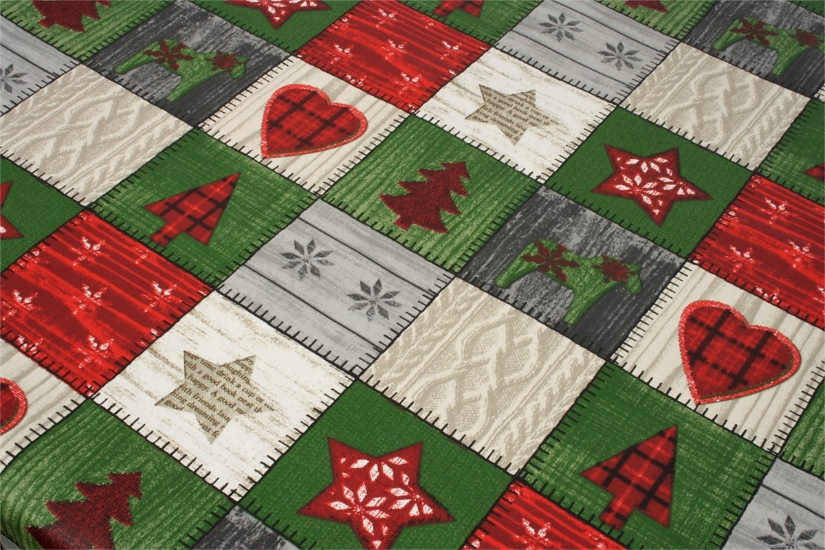 Juleduk Scandy, akrylduk med julemotiver i ruter – 155 cm bred