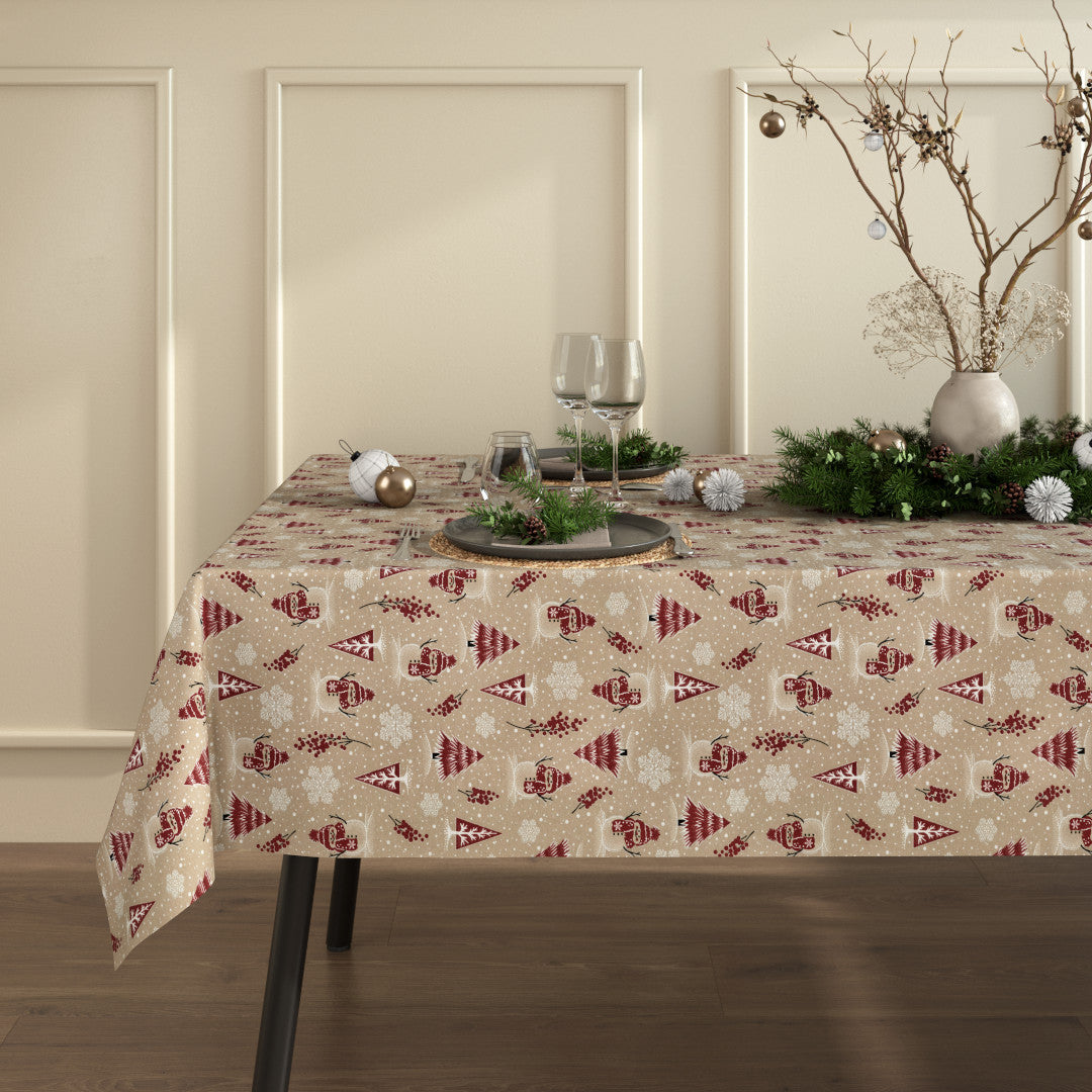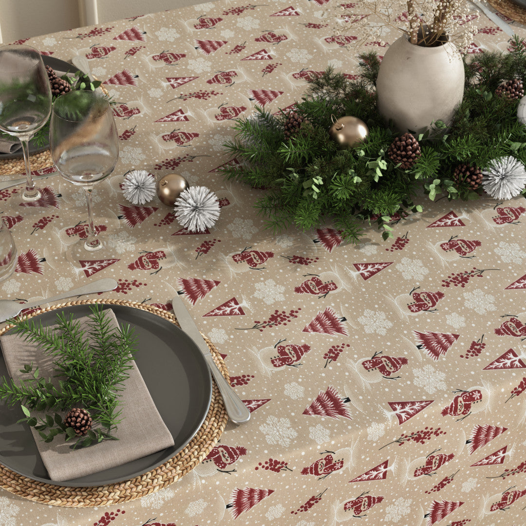 Duken er praktisk med sin vannavvisende akrylbehandling som gjør den enkel å rengjøre – ideell til julemiddager og koselige sammenkomster. De glitrende detaljene gir et ekstra dryss av julemagi, og det søte designet passer perfekt både til hverdag og fest i desember.