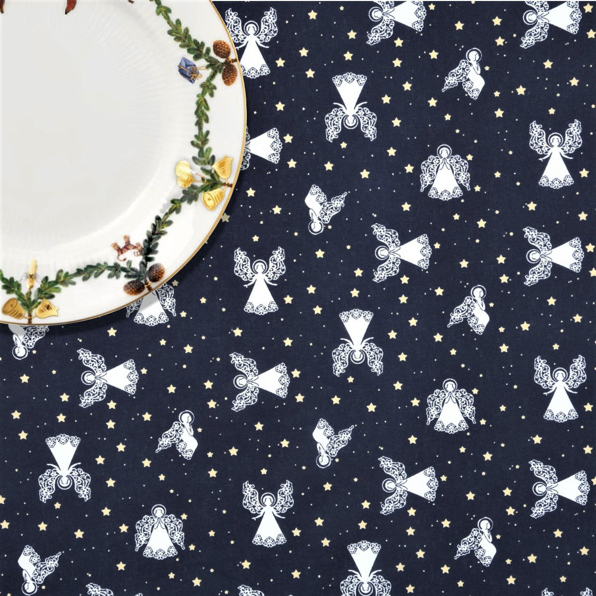 Juleengler Blå - Juleakrylduk med stjerner og engler er i restordre og sendes så snart varen er på lager igjen.