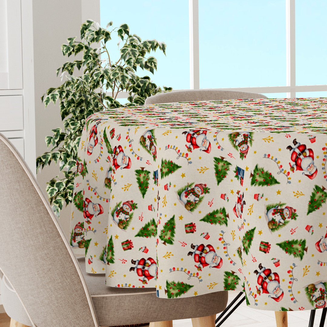 Julenisse & Snømann bringer glede og farger til desemberbordet. Her møtes julenisser med gaver, glade snømenn, juletrær og stjerner i et festlig mønster som fanger den klassiske julestemningen.