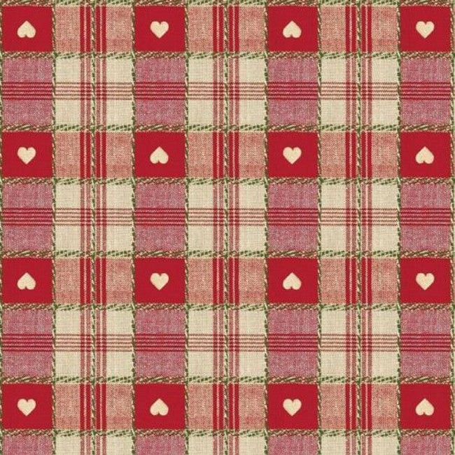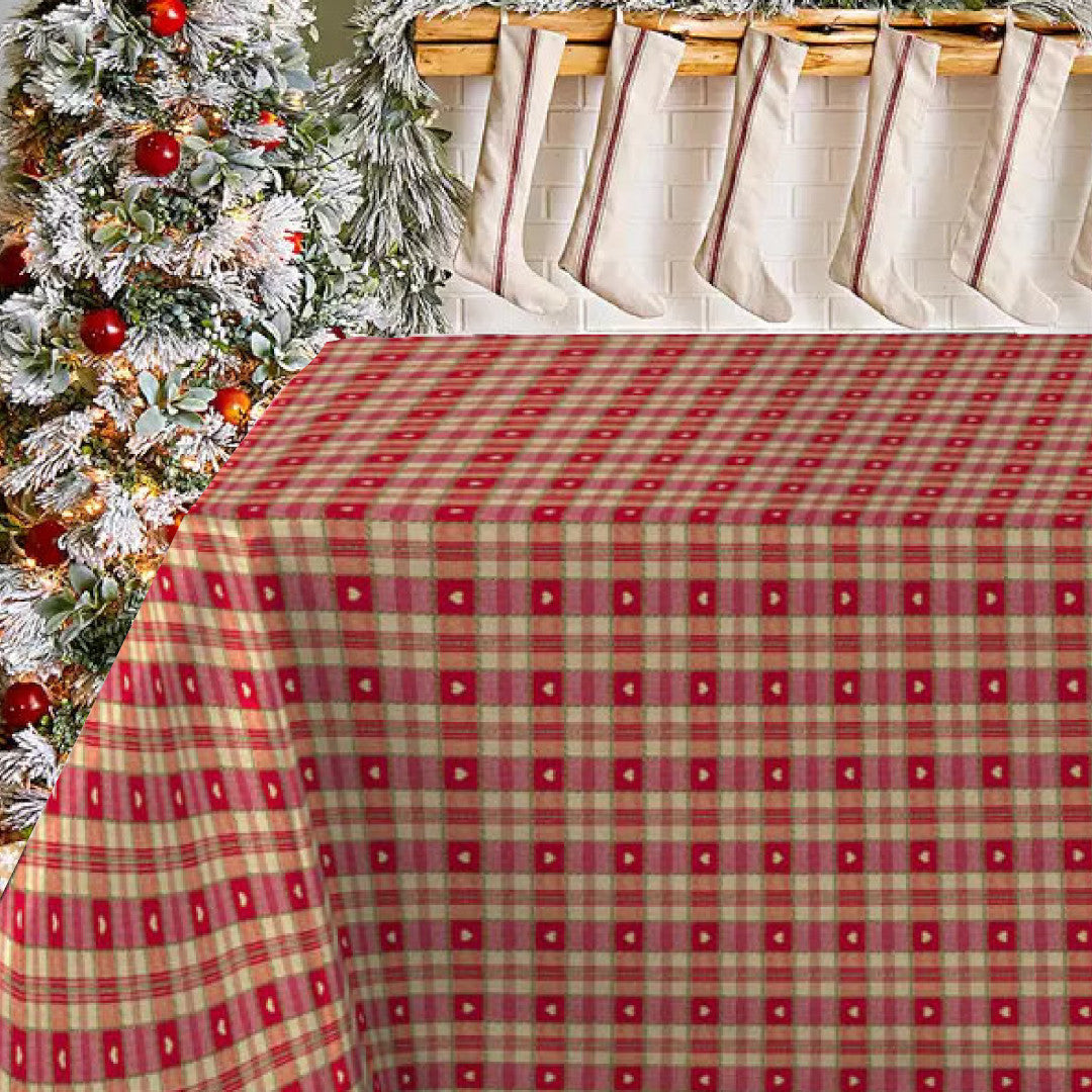 Julevoksduk, ekstra bred voksduk, Hjerter i ruter, rød 160 cm bred