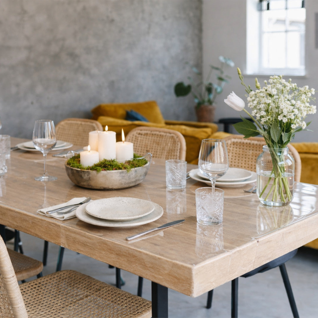 Perfekt for smale bord hvor du ønsker maksimal beskyttelse uten å skjule overflaten. Produsert i Tyskland, godkjent for kontakt med mat (LFGB) og 100 % ftalatfri. Robust, rivesterk og enkel å tilpasse – ideell for både inne- og utendørs bruk.